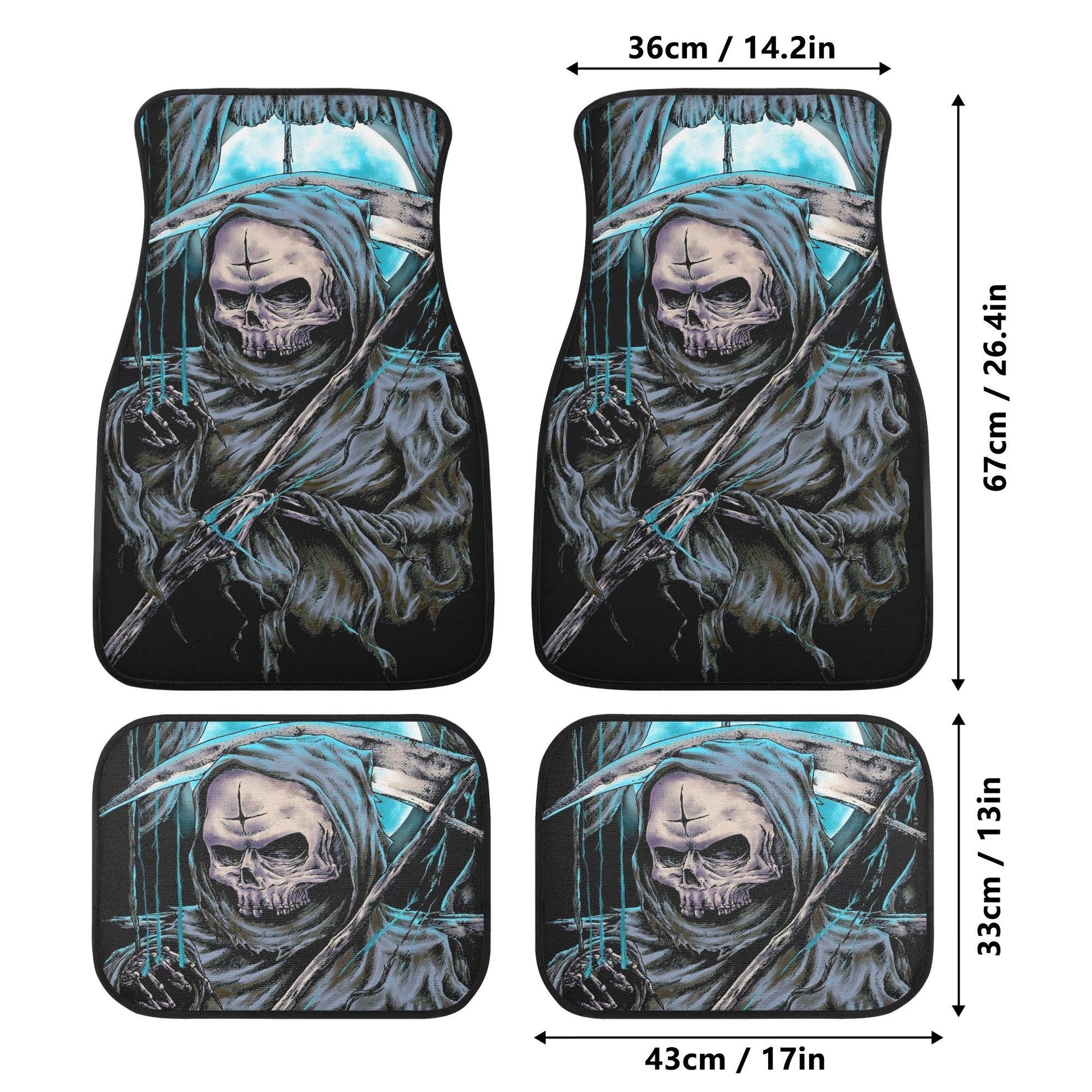 Gothic skull Car Seat Cover mat Grim reaper skull seat cover mat for car Halloween skull skeleton seat protector cover mat protector for car Constructed with high quality polyester micro-fiber fabric for maximum durability and comfort. Add style to your seats while protecting them from spills, stains, tearing, fading and more. Designed for quick and easy installation on most car and SUV bucket style seats - no tools required. Elastic backing and fastening system ensures a snug and secure universal fit on most standard car and SUV seats. Not for use on seats with integrated airbags, seatbelts or armrests. Size: Front seat cover: 19 in x 20 in x 31 in x 18 in (please see photo for detail) Back seat cover: 23 in x 30 in x 47 in (please see photo for detail) ==== Car mats All of our Front And Back Car Mats are custom-made-to-order and handcrafted to the highest quality standards. Add style to your car while keeping your floors clean and protected! Features a durable and easy-to-clean custom print constructed from a waterproof polyester material. Rubberized backing with black finished edges ensures a secure grip and skid-free placement. Keep your car floors protected from dirt, spills and daily wear and tear with these stylish custom printed car floor mats! Size: Front mat: 26in x 17in Back mat: 13in x 17 (see detail in product images) ======== All products in our store are only manufactured upon receiving an order from the customer. Please carefully review the product description and dimensions in the illustrative images before placing an order. The following cases are not eligible for return/exchange: 1. The product you receive matches the description. 2. The product dimensions (with illustrative images describing the dimensions) you receive match the description. 3. The product has been customized as per your request (e.g., printed with your name/image).