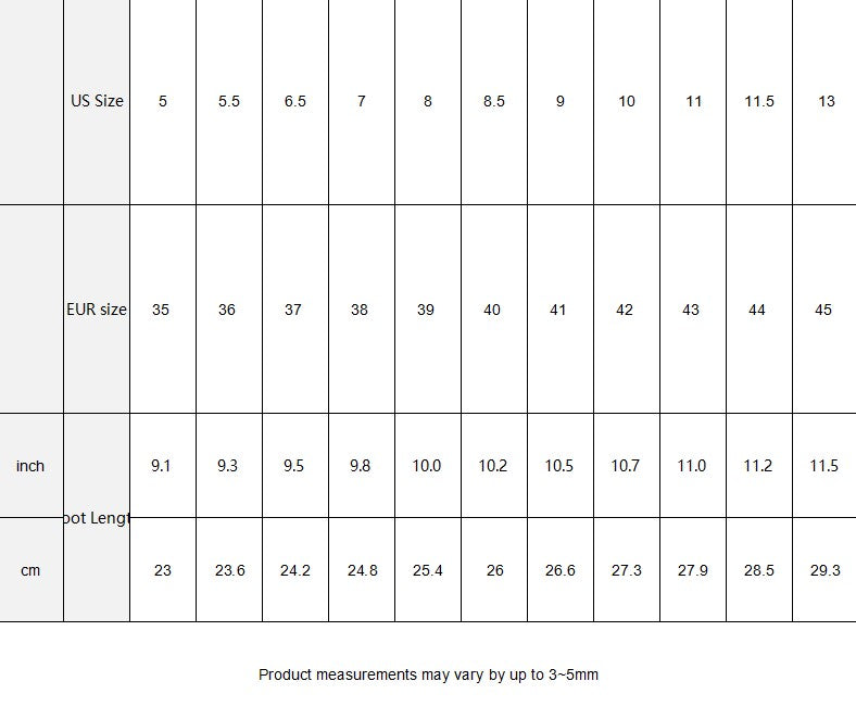 | US Size | UK Size | EURsize | Foot Length | ||||