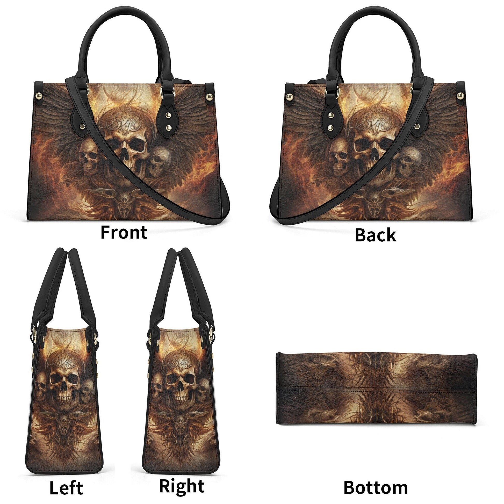 Christmas skull women's handbag, devil ghost women's handbag, skull in fire crossbody bag, skull handbag, flower skull handbag with strap, dark horror handbag, Spooky Halloween tote bag, punisher skull handbag with strap, skull messenger bag, skull shoulder bag, punisher skull handbag with strap, sk Size: LENGTH x WIDTH x HEIGHT 29cm x 11cm x 20cm 11.4in x 4.3in x 7.9in * The main material of this handbag is PU leather * Smooth zipper and all over printing customized style * Main compartment design with two top handles maintains balance * One inside pocket with sewn-in and non-removable shoulder strap * White & Black color for different style with wearing outfits * This handbag is a great gift for girls and moms. Suitable for commuting and traveling. * You can put your phone, keys, and small items you need everyday. CARE INSTRUCTIONS: Regular wiping is recommended with cold water and a wet cloth. And just dry it to get rid of the smell. (It's normal to smell something when you receive it. Leave it in the air for 2-3 days to remove) ======== All products in our store are only manufactured upon receiving an order from the customer. Please carefully review the product description and dimensions in the illustrative images before placing an order. The following cases are not eligible for return/exchange: 1. The product you receive matches the description. 2. The product dimensions (with illustrative images describing the dimensions) you receive match the description. 3. The product has been customized as per your request (e.g., printed with your name/image).