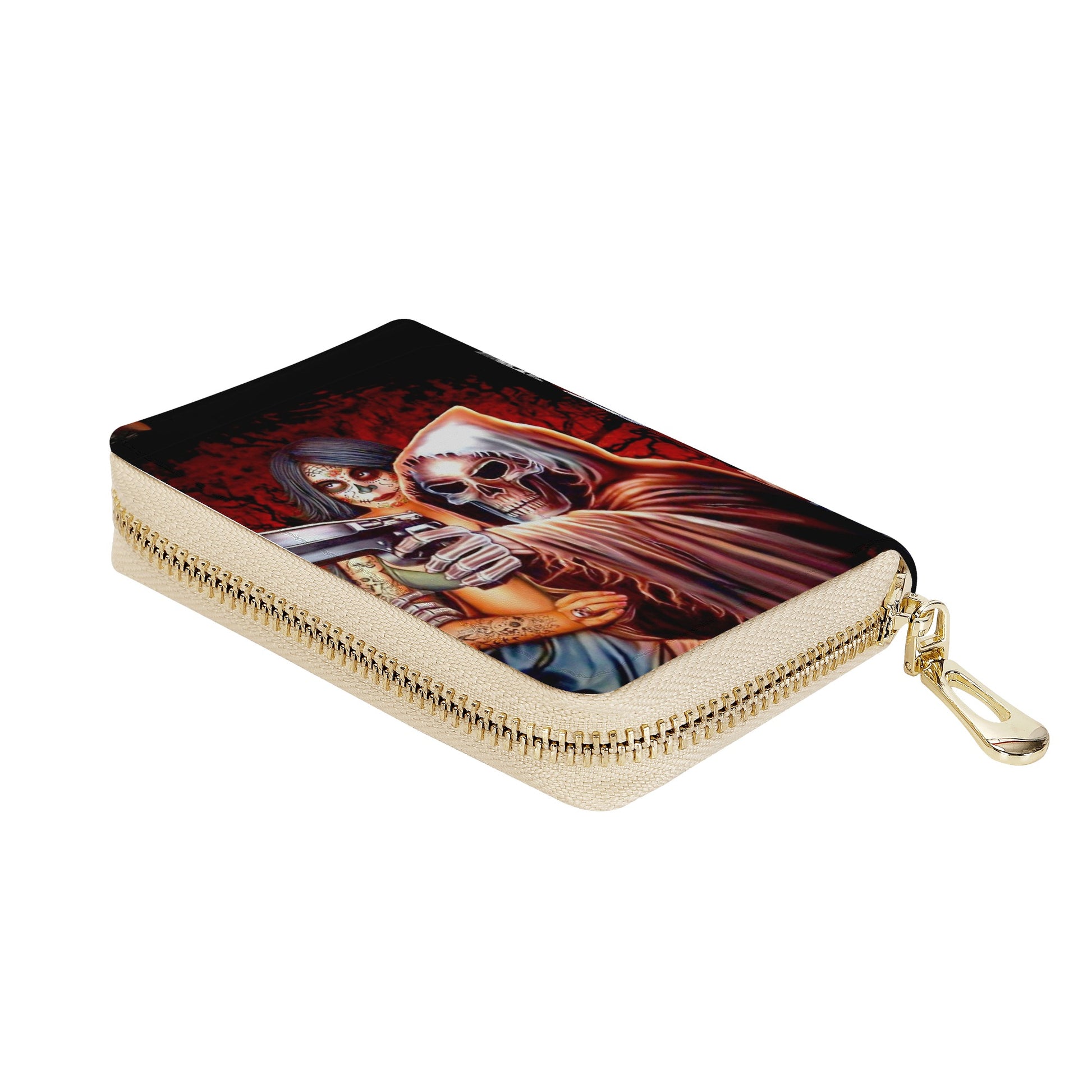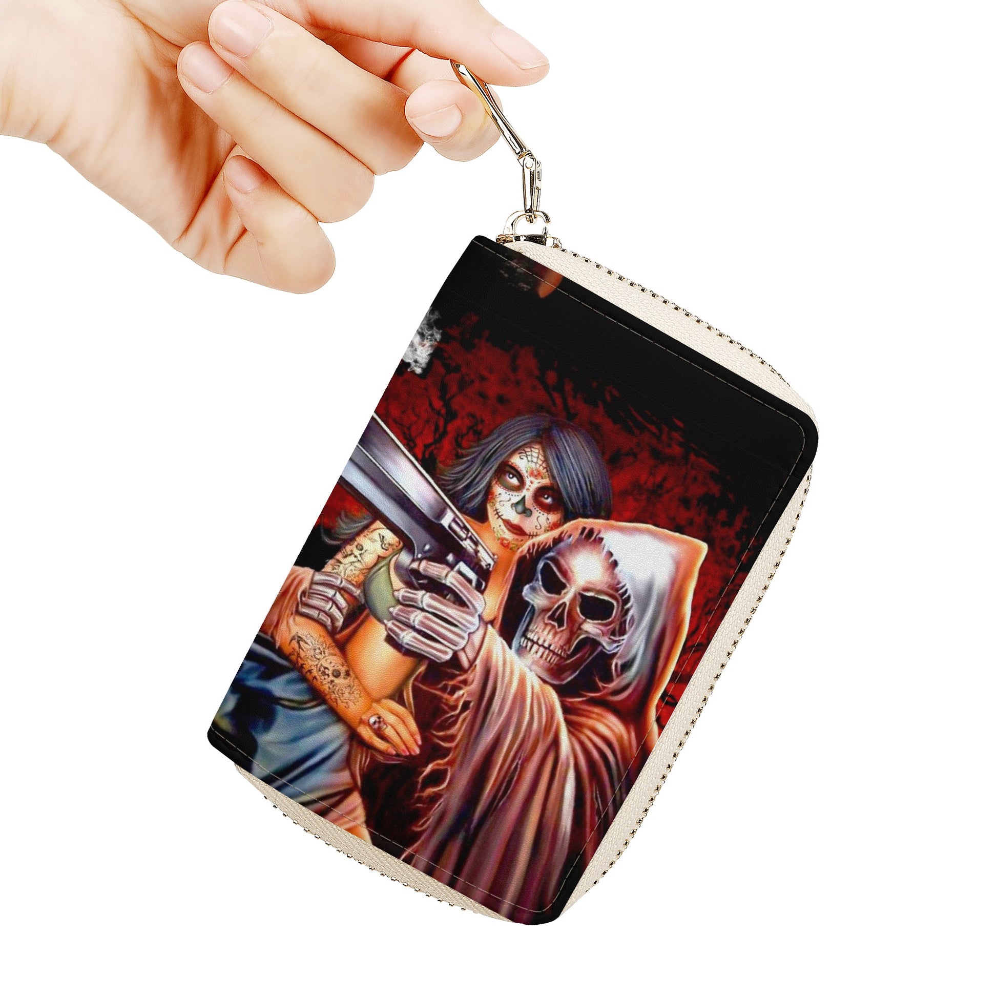 Sugar skull card holder bag, sugar skull wallet, sugar skull coin wallet, day of the dead wallet, day of the dead coin card holder, grim reaper skull Halloween coin card holder, skeleton coin card holder, gothic horror skull coin card holder, Halloween card holder wallet