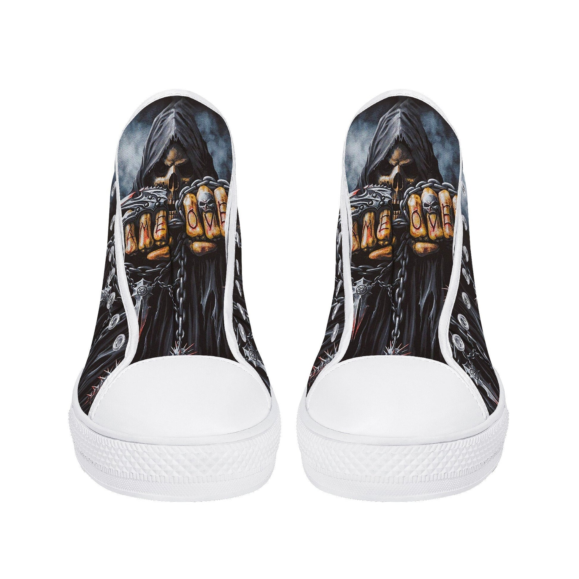 Grim reaper game over skull canvas shoes, reaper skull high top shoes biker skull shoes gift horror causual shoes biker skull high-top shoes