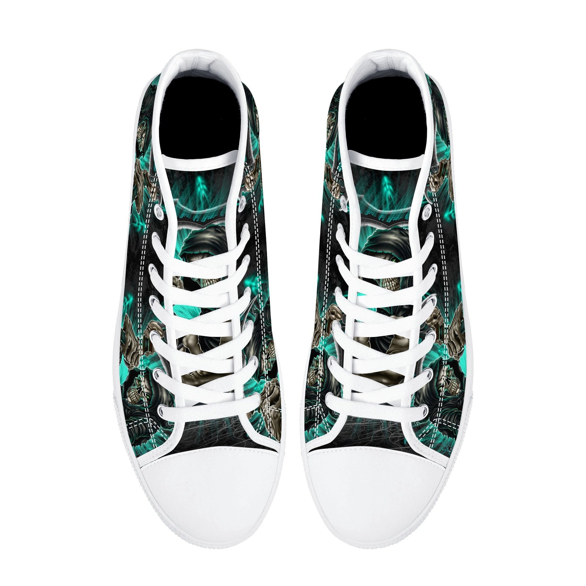 Grim reaper Goth men sneakers, punisher skull high-top shoes, skull in fire shoes, floral skull sneakers, grim reaper men shoes men shoes