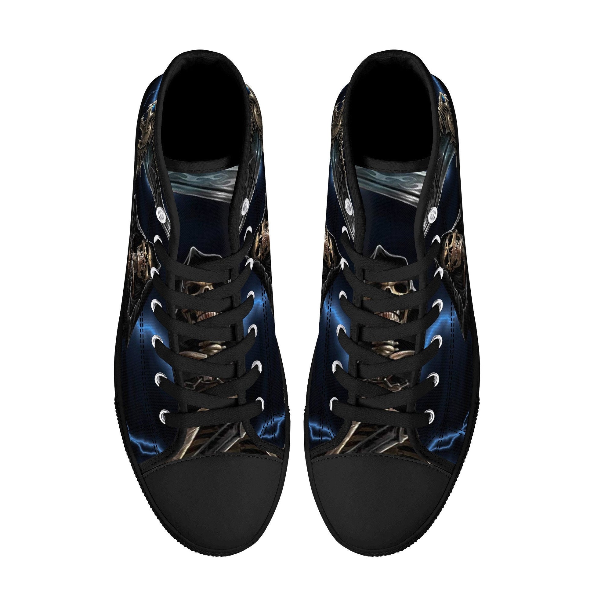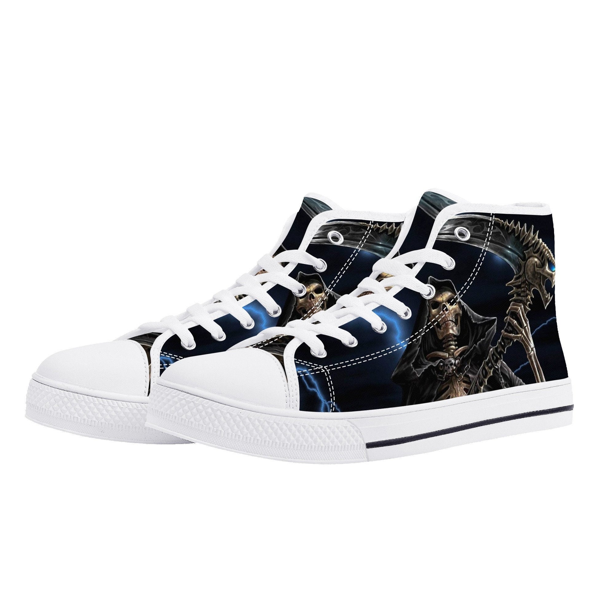 Halloween hight top sneakers, dark horror high-top shoes, skull with scythes men sneakers, evil face high top shoes, evil face shoes, flower