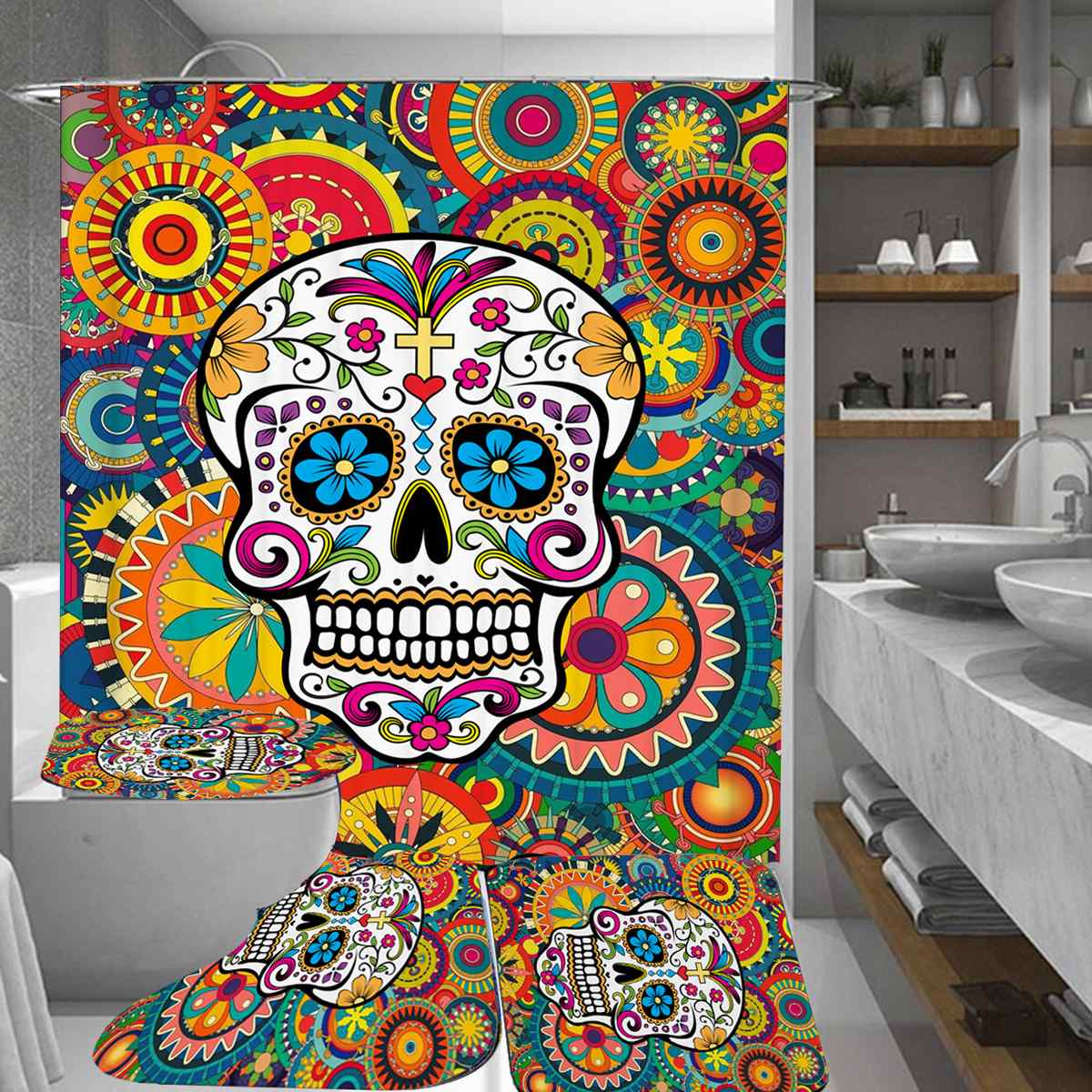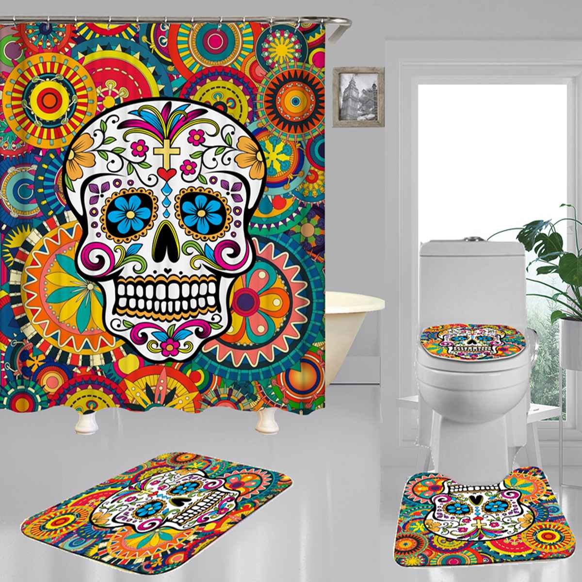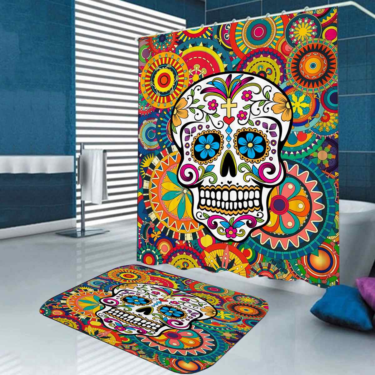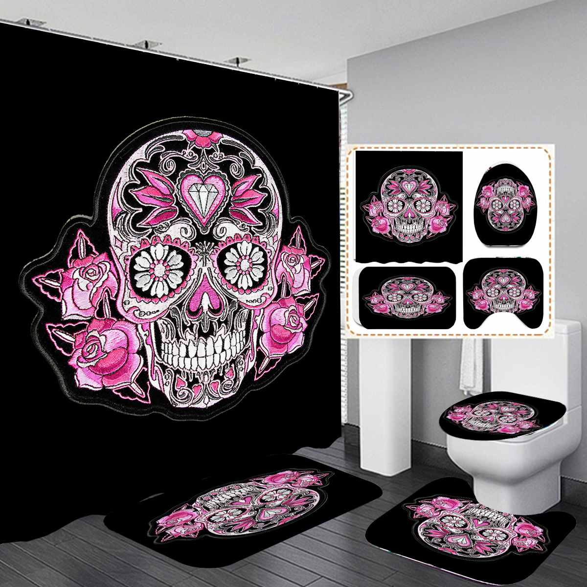 Halloween Skull bathroom curtain Waterproof Shower Curtain Set