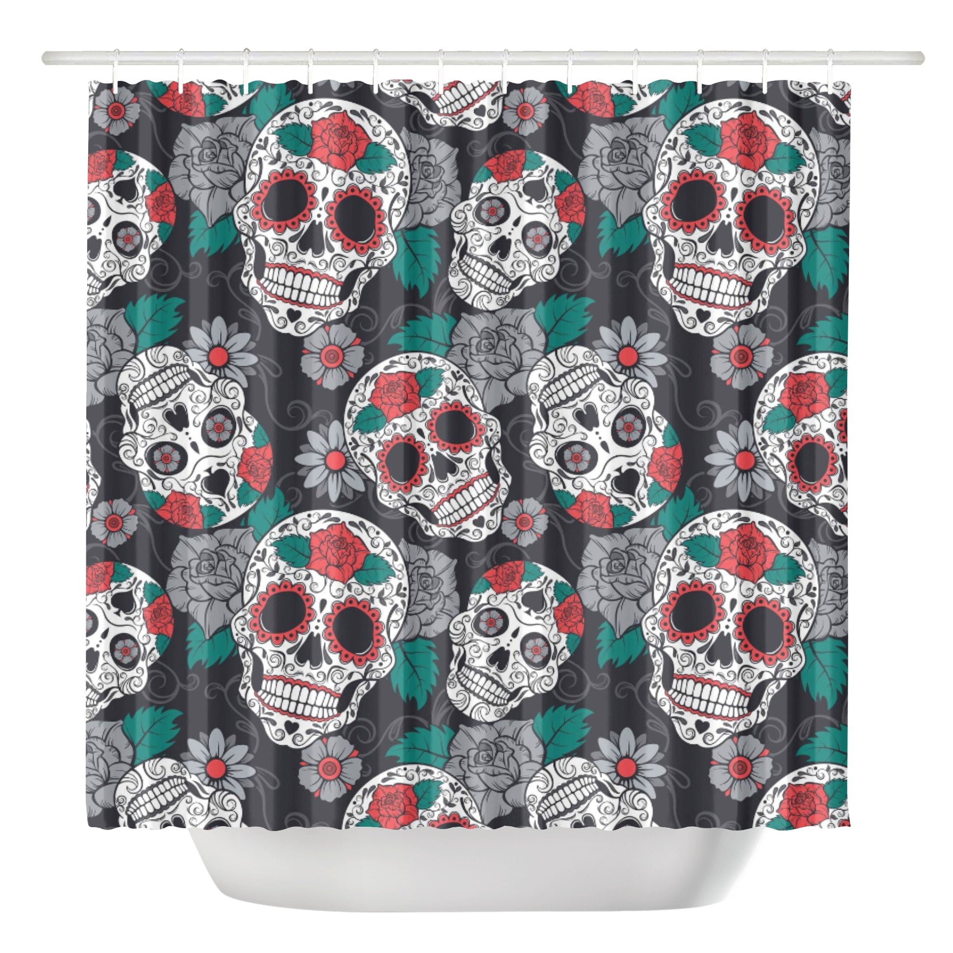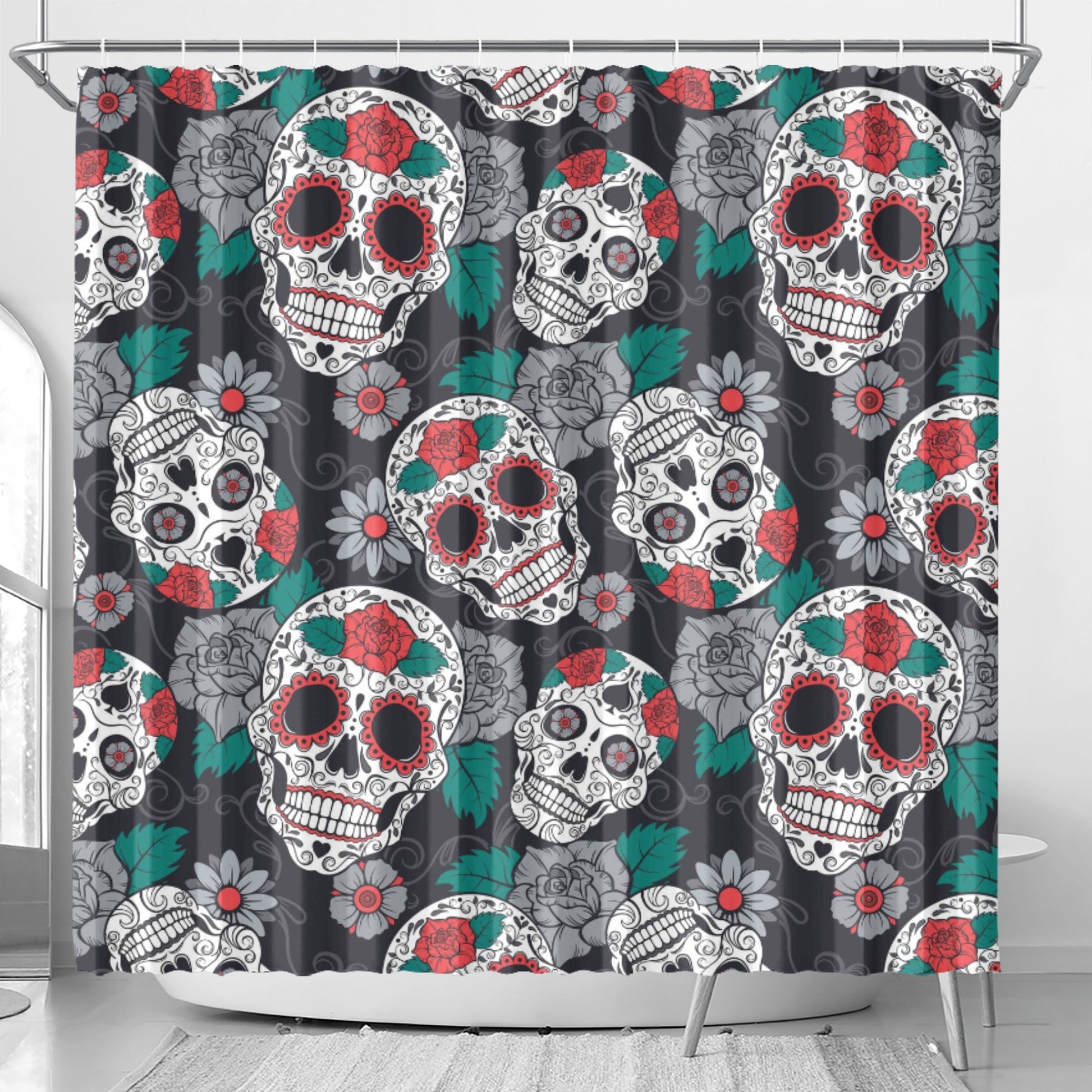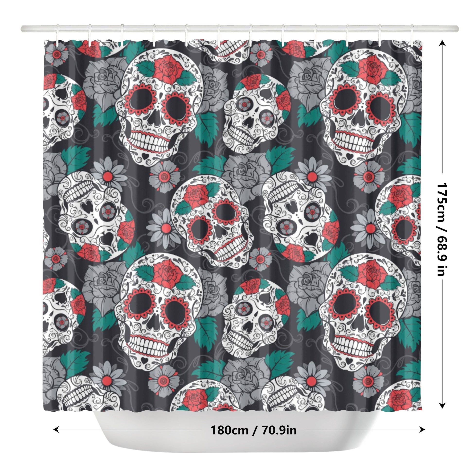 Sugar skull bath room shower curtain, day of the dead shower curtain, Dia de los muertos shower curtain, Halloween skeleton gothic shower curtain, sugar skull bath room decoration, day of the dead bath room decoration