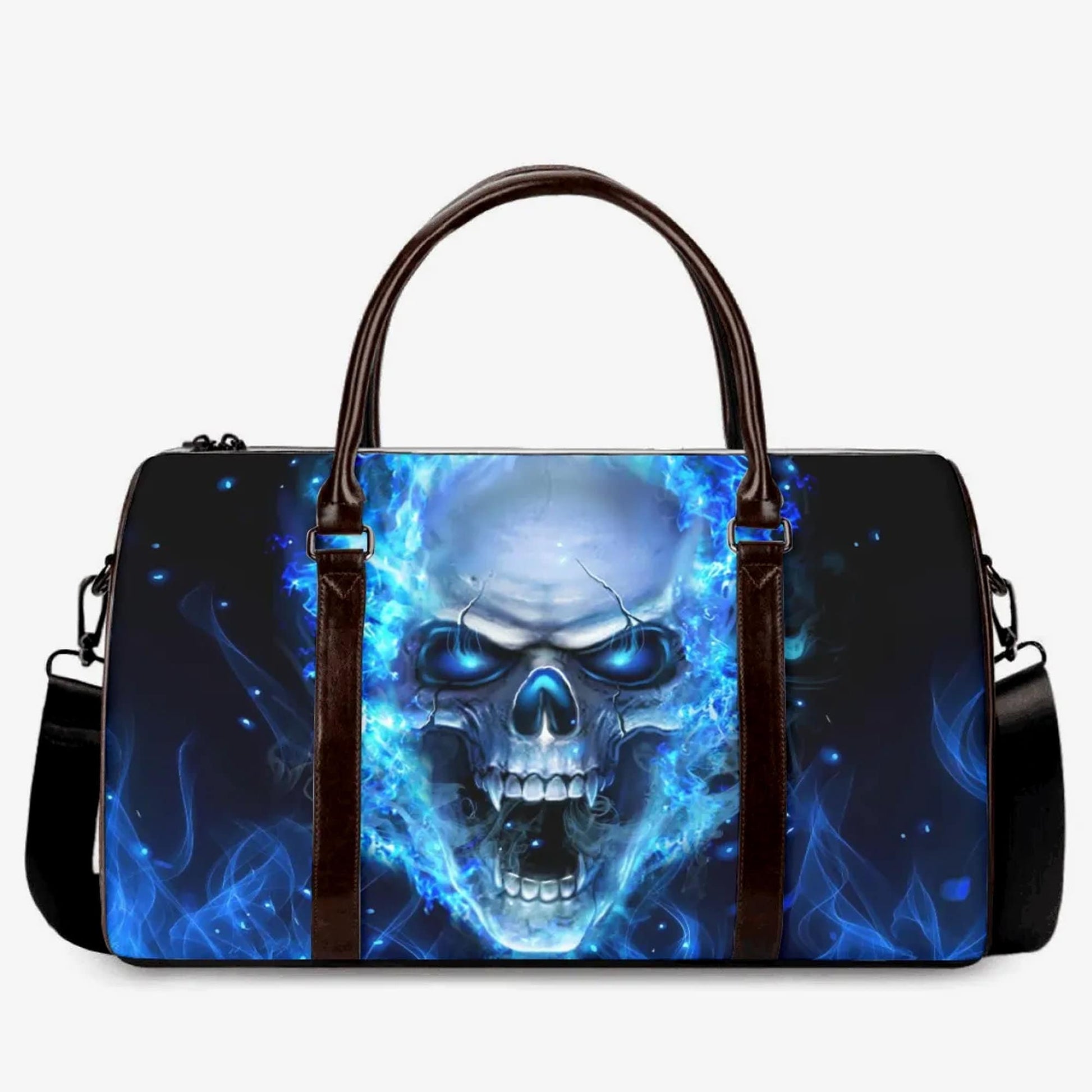 Halloween travel bag, biker skull Carry On Bag, death skull large travel bag, death skull monogrammed bag, halloween handbag, skull in fire