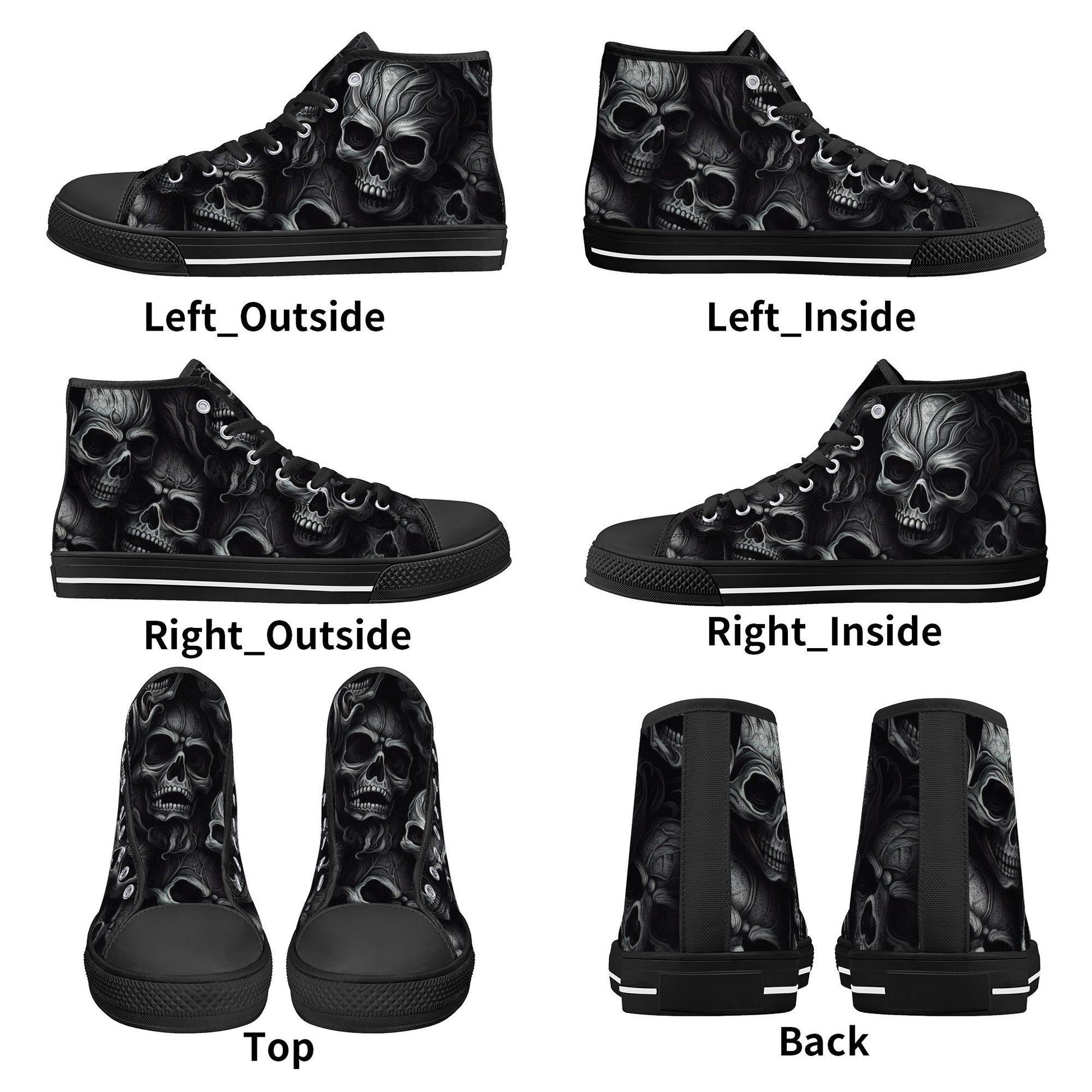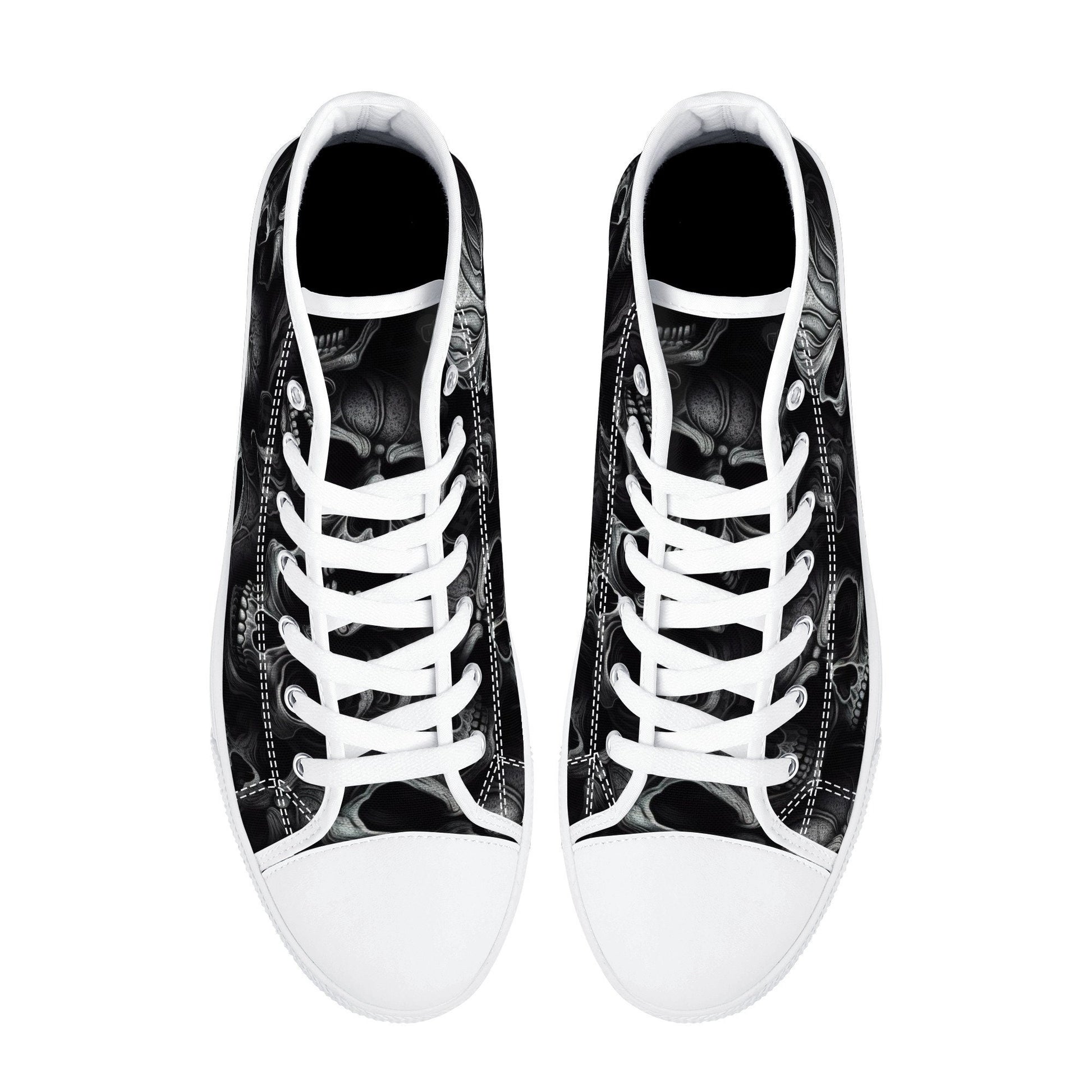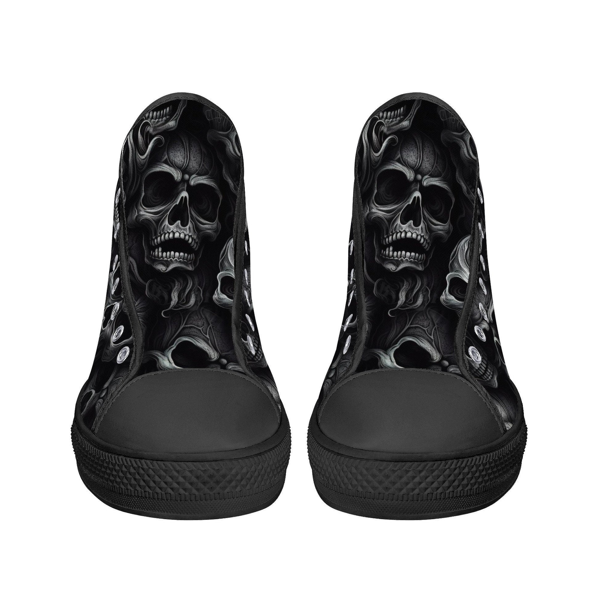 Gothic skull shoes, death with scythes hight top sneakers, skull in fire canvas sneakers, hooded skull men sneakers, goth causual shoes, biker skull women sneakers, horror high-top shoes, death with scythes sneakers gift, spooky death causual sneakers, reaper skull shoes for him, flame skull shoes