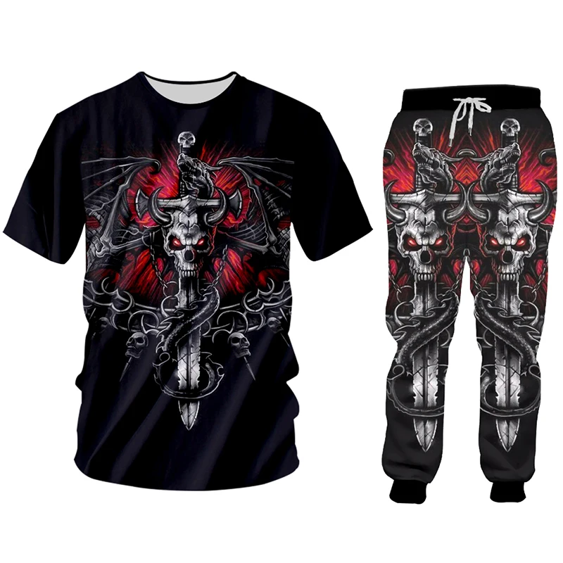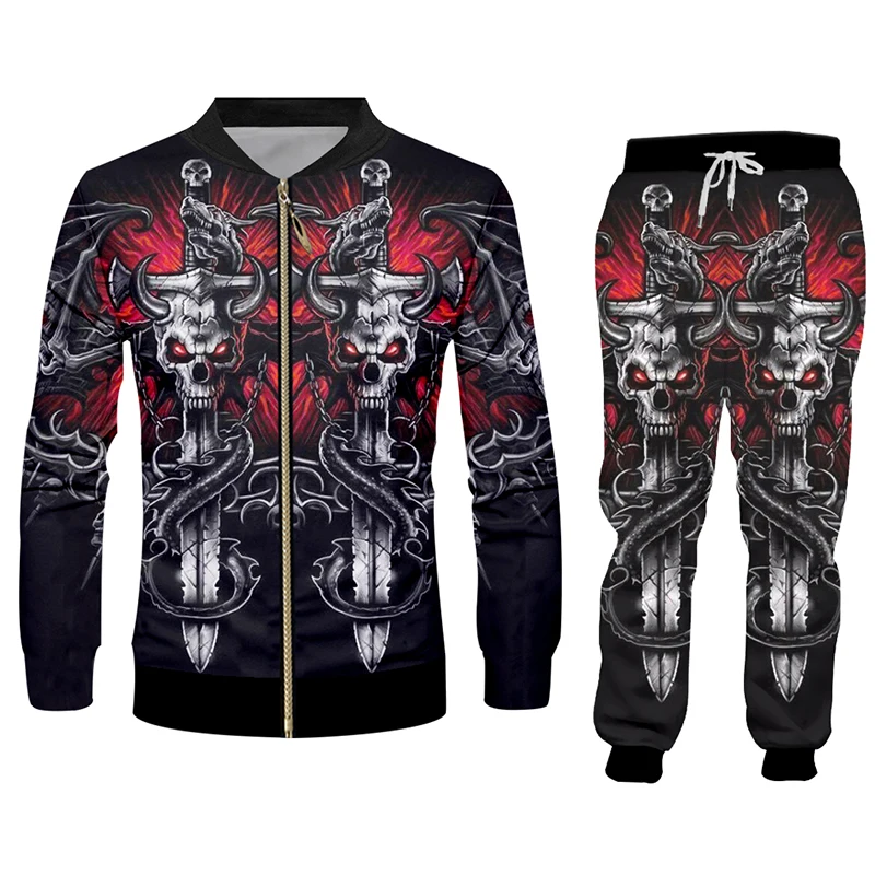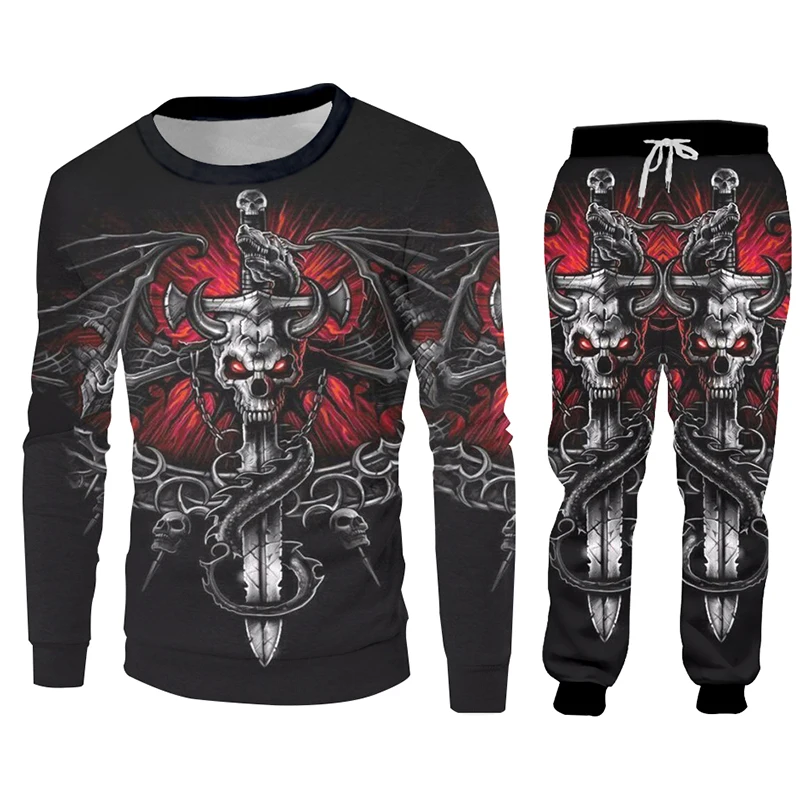 Hot Cool Cross Skull 3D Print Hoodies And Jogging Pants Set High Quality Streetwear Trendy