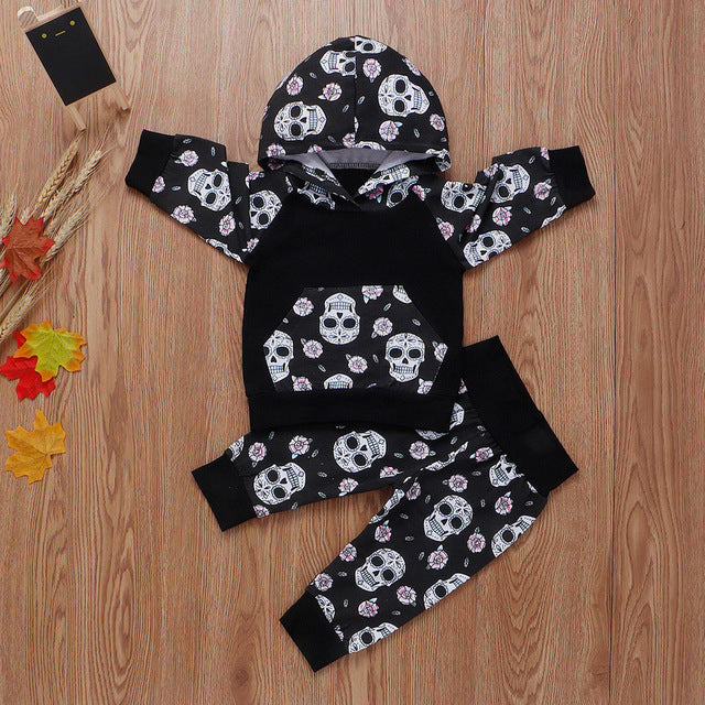 Toddler Kids Baby Boys Long Sleeve Hooded Skull Print Sweater Tops+Pants Outfits