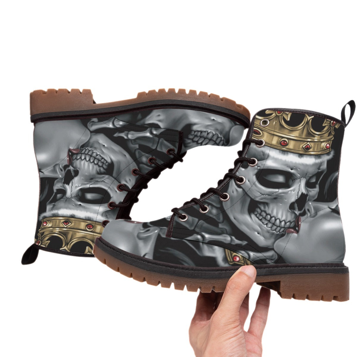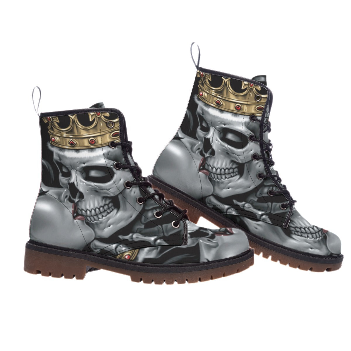 KING & Queen skull Men's Women's Martin Short Boots, Gothic skull skeleton boots shoes