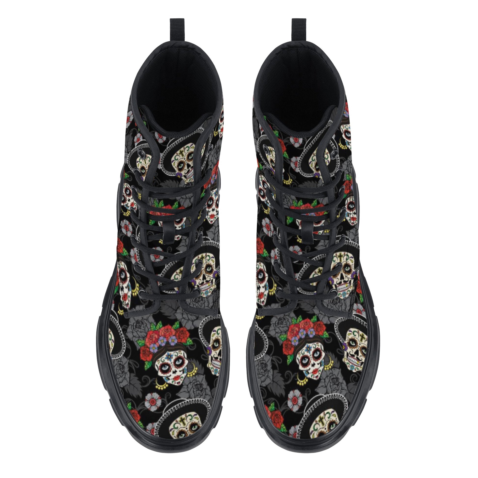 Sugar skull day of the dead boots, sugar skull women's men's boots, halloween women's men's boots, Dia de los muertos women's men's boots, day of the dead women's boots