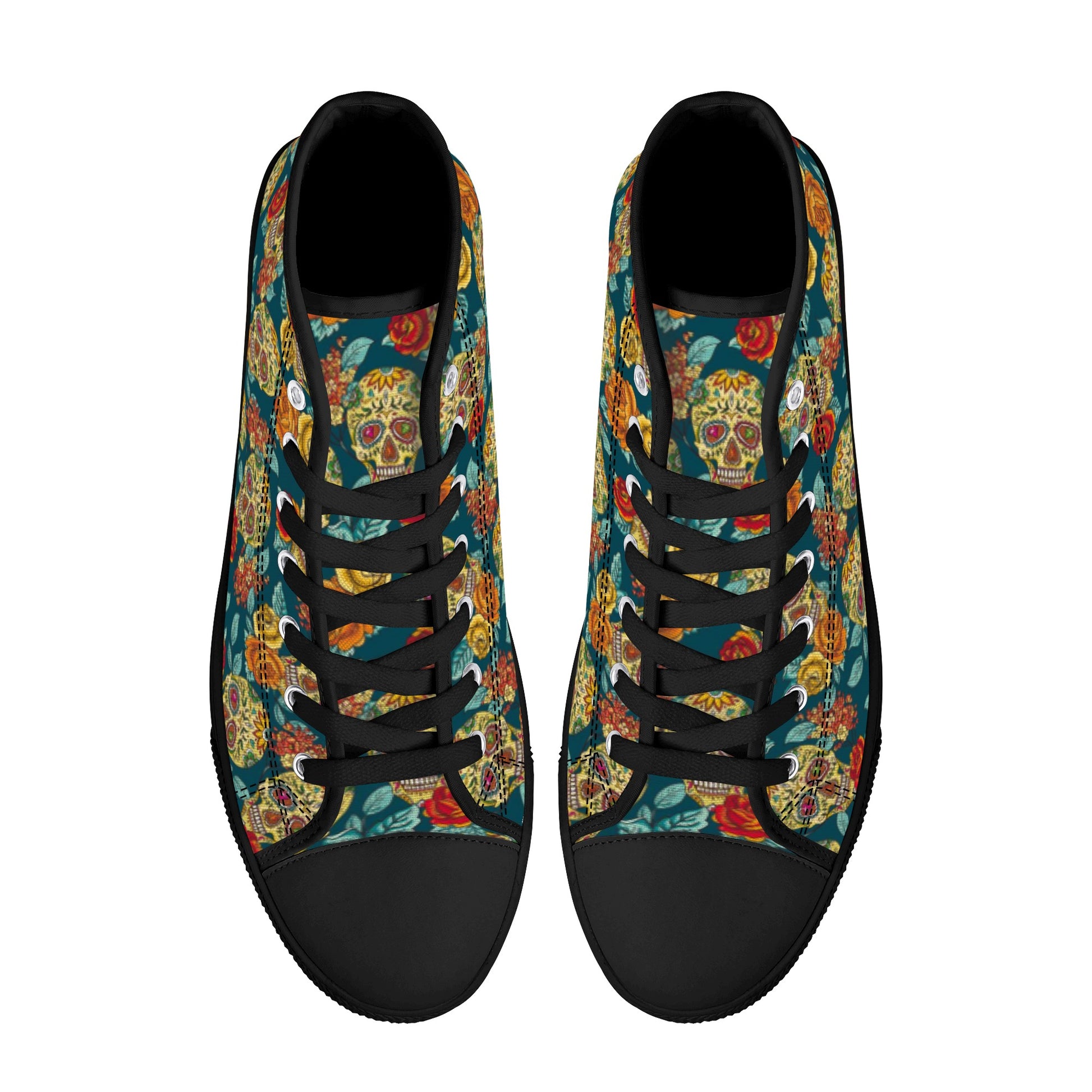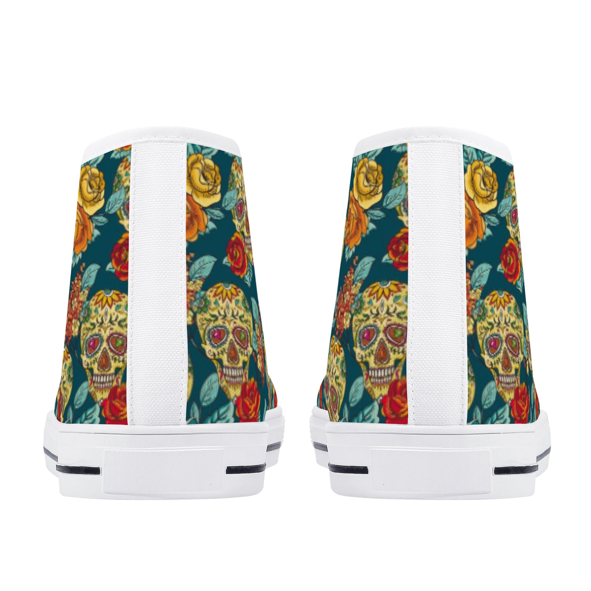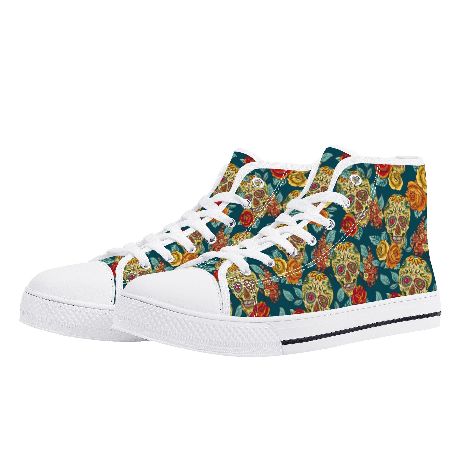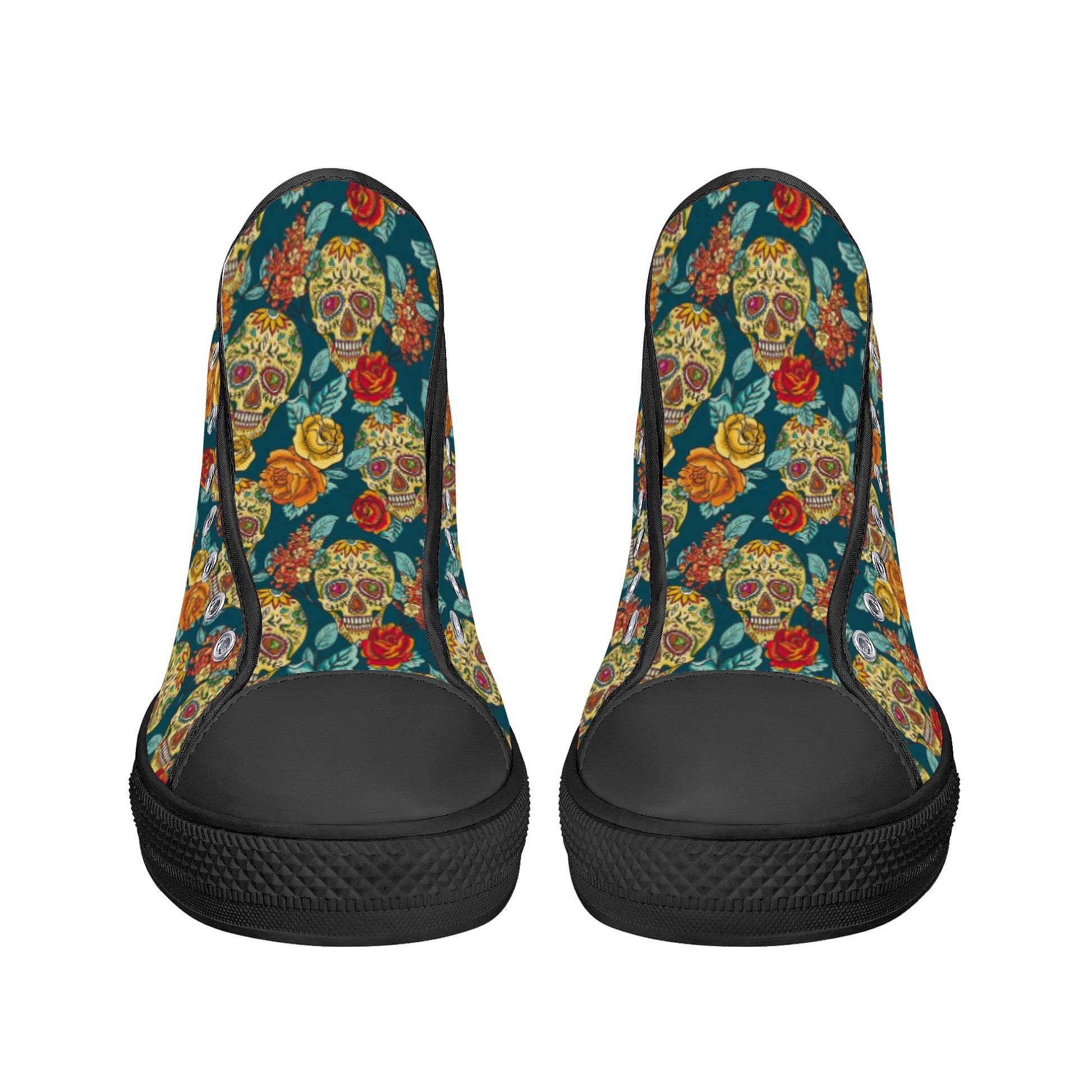 Mexican skull Calaveras day of the dead Women's High Top Canvas Shoes With Customized Tongue