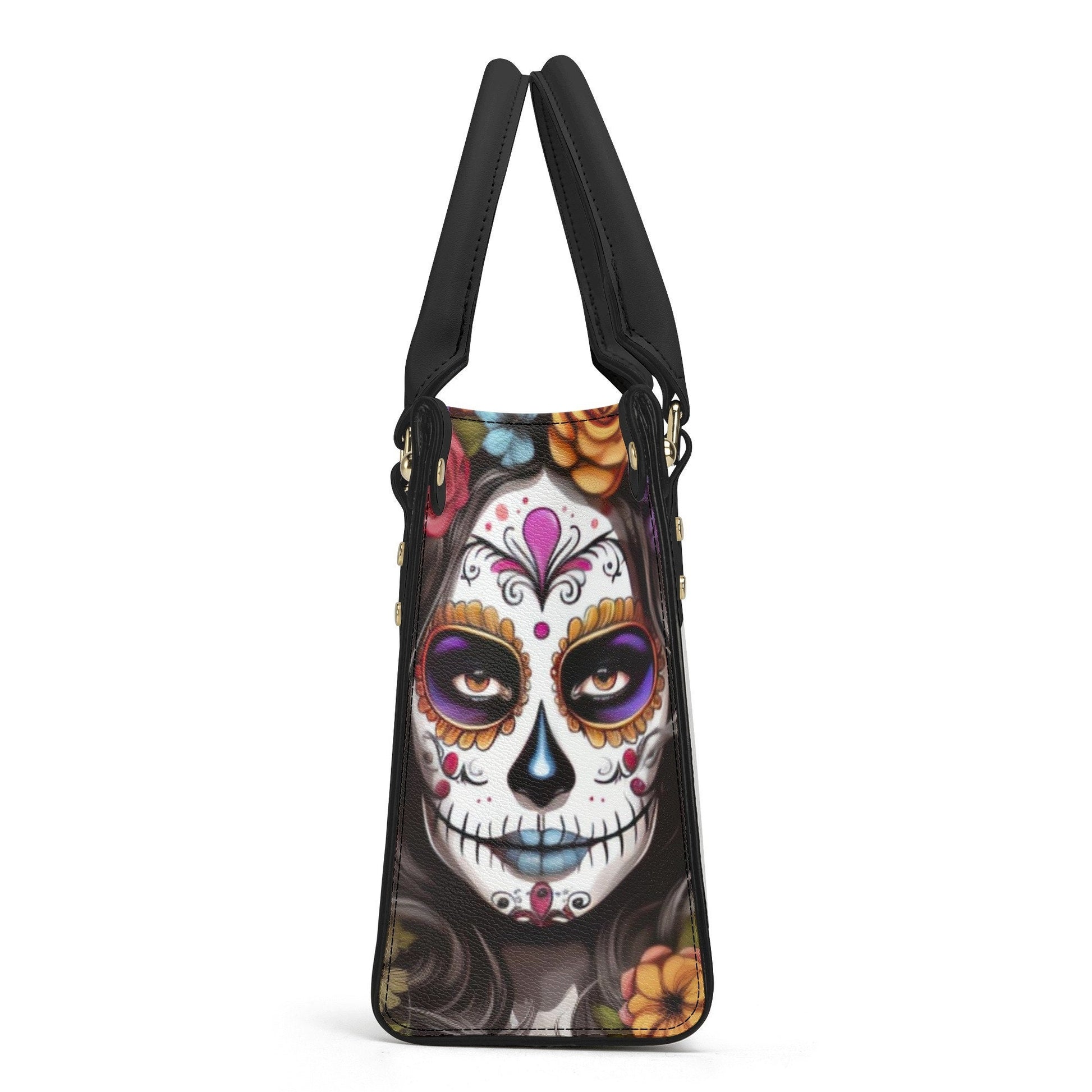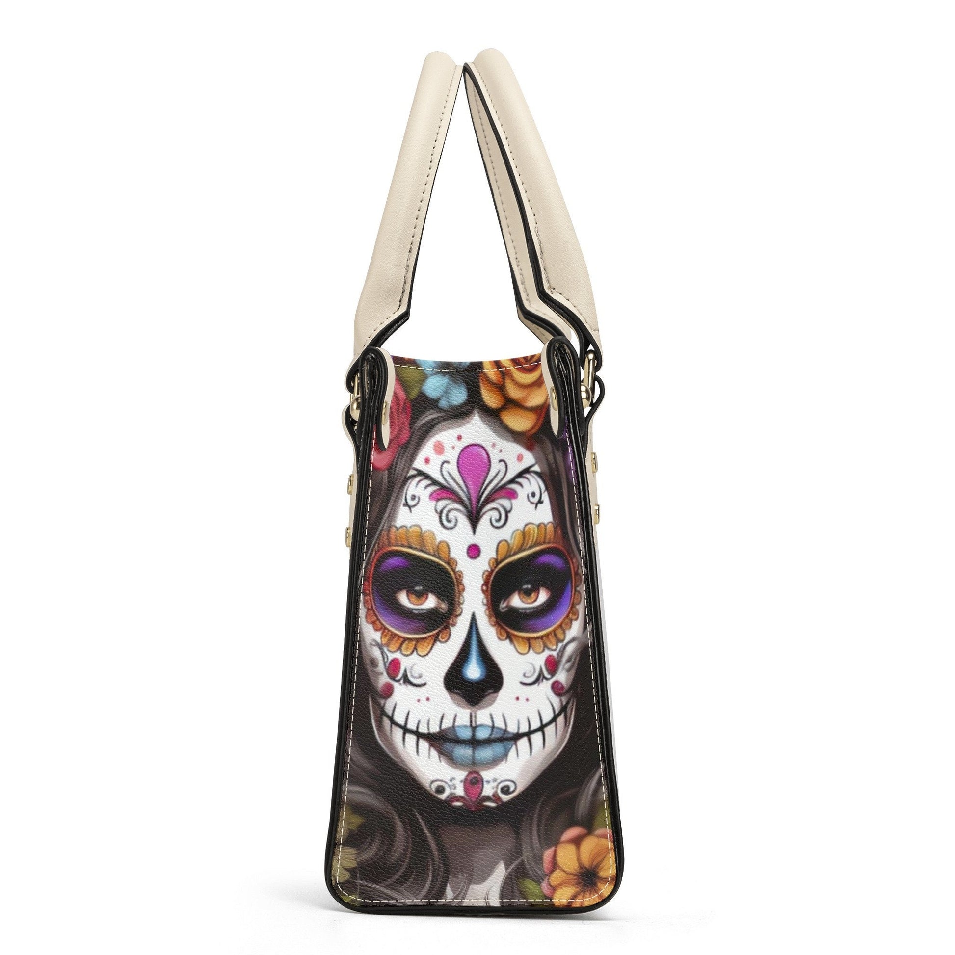 Floral sugar skull handmade bag, dia de los muertos skull shoulder bag, dia de los muertos skull handbag, floral skull handbag, calaveras skull travel bag, day of the dead messenger bag, sugar skull girl travel bag, mexican skull body bag, sugar skull handbag with strap, mexican skull travel bag, ca