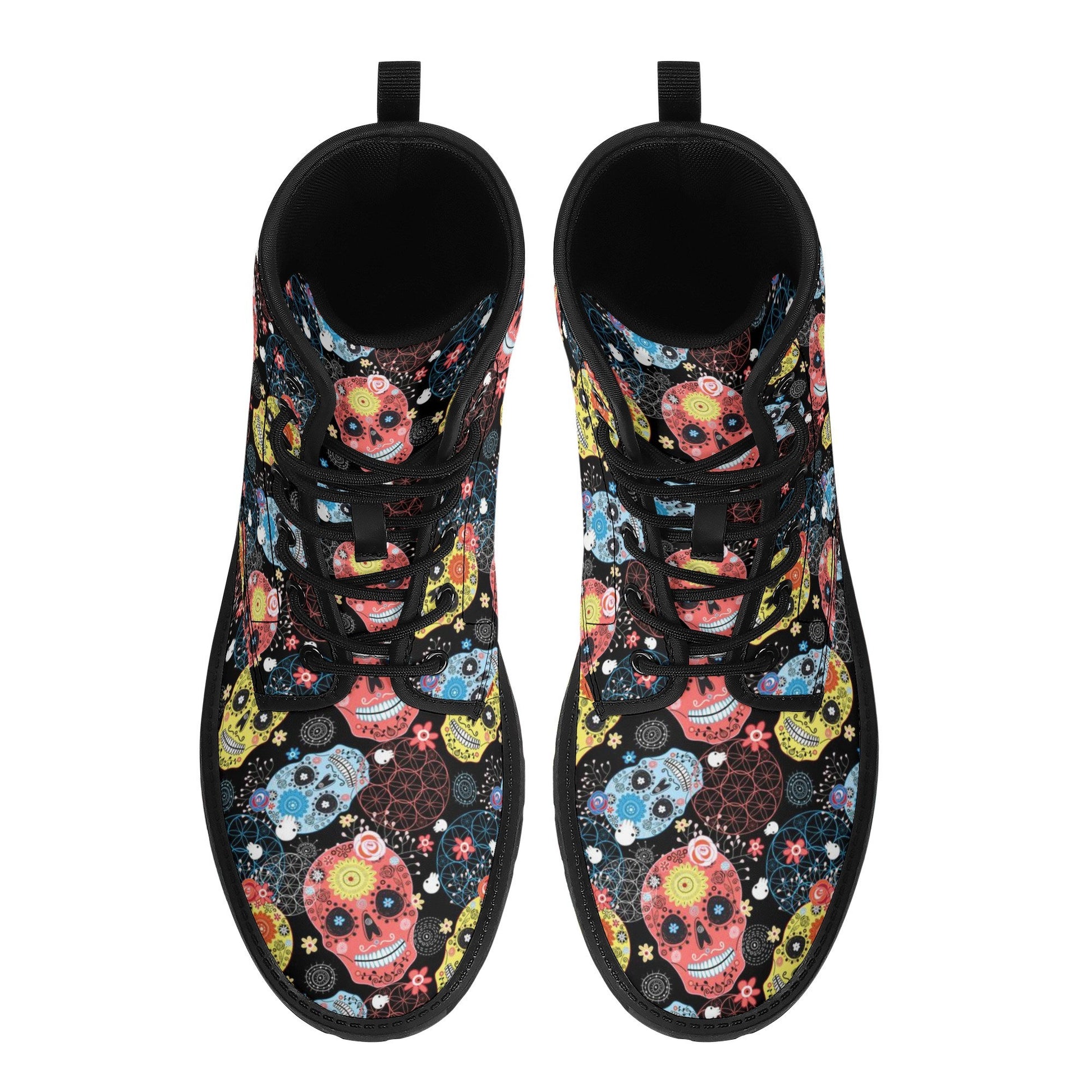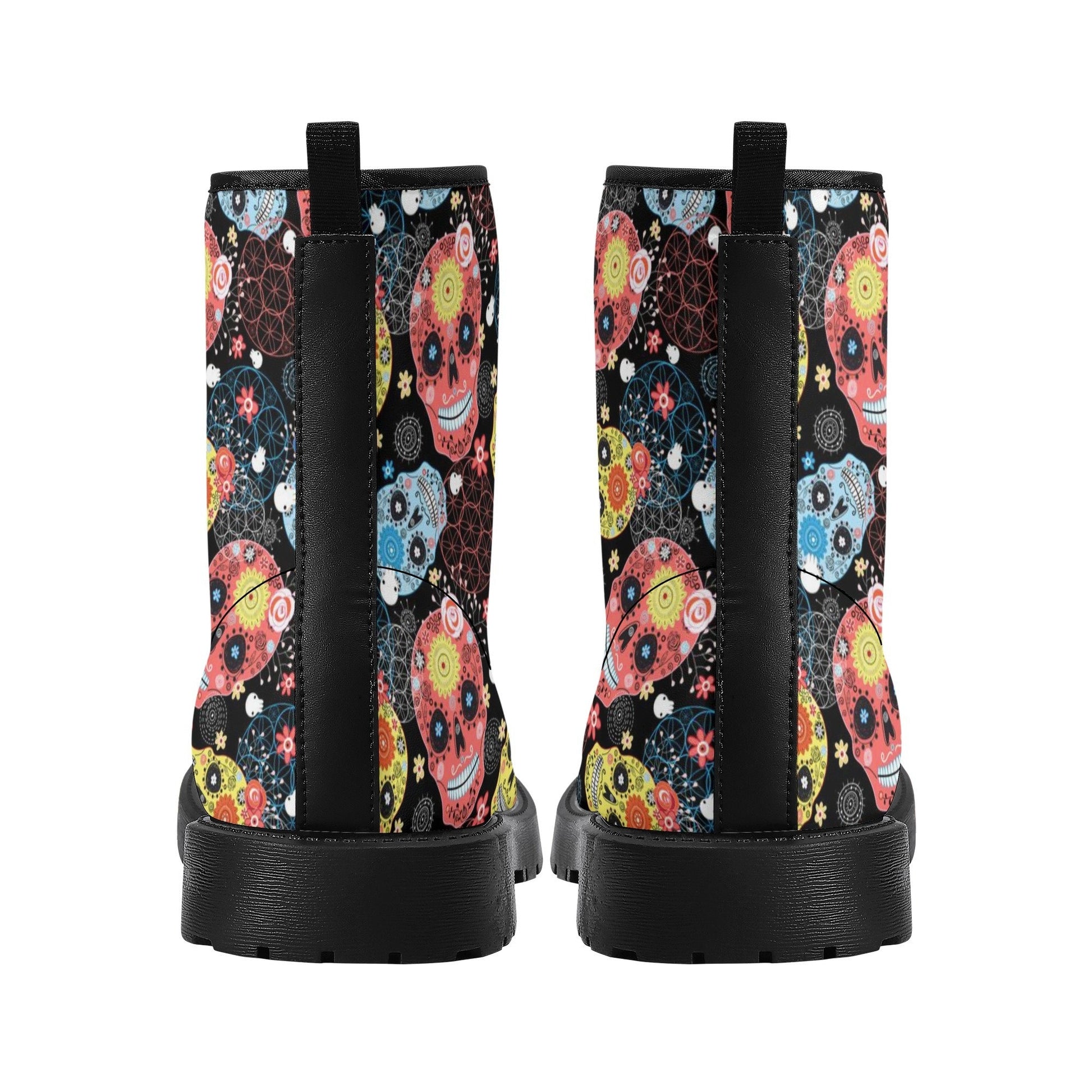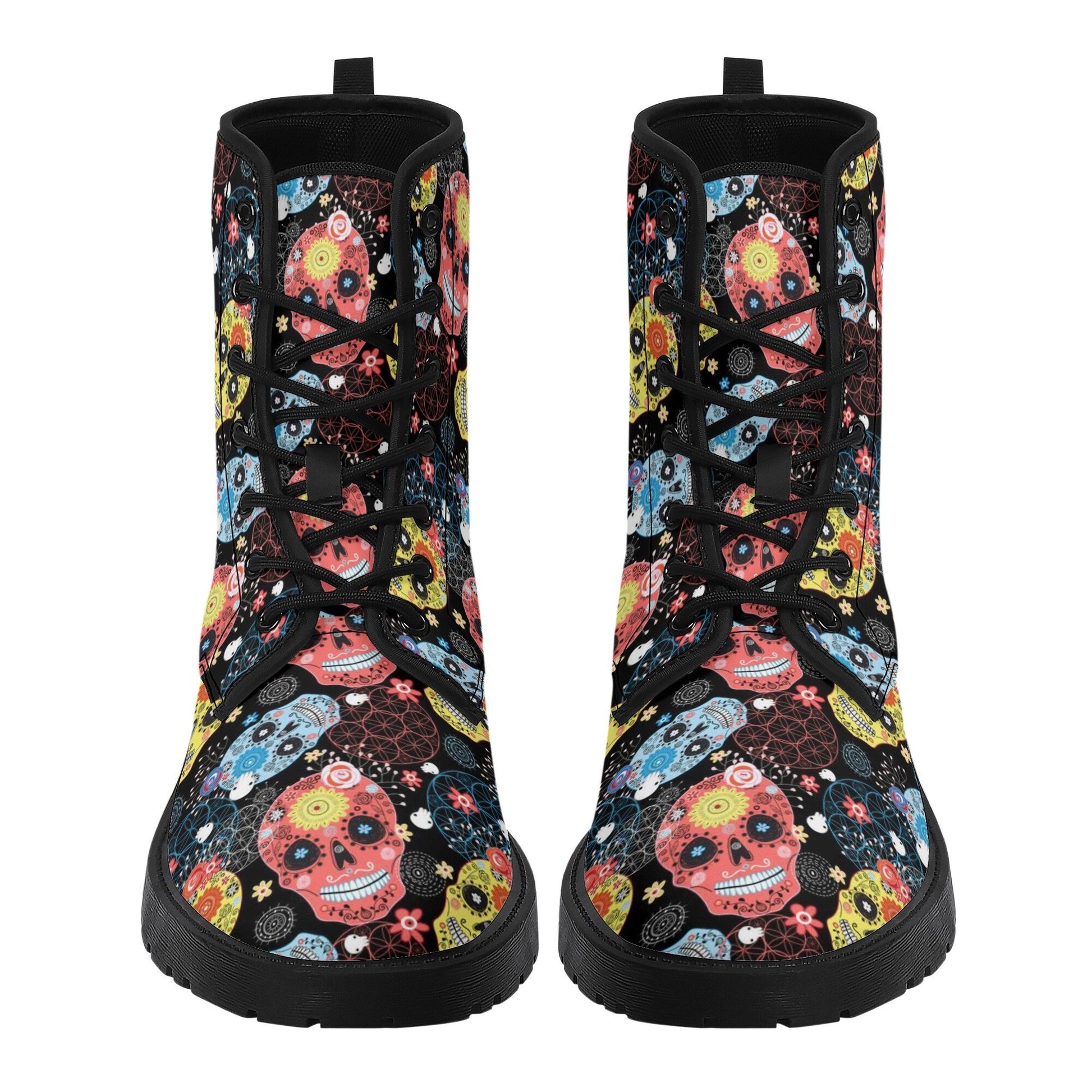 Mexican skull combat boots, cinco de mayo skull unisex shoes, calaveras skull ankle Boots, mexican skull waterproof shoes, floral sugar skull combat boots, mexican skull shoes, dia de los muertos skull fashion leather boots, sugar skull waterproof boots WOMEN SIZE Size______Foot Length (cm) US5_______23.1cm US5.5_____23.8cm US6_______24.4cm US7_______25.1cm US8_______25.7cm US9_______26.4cm US10______27.0cm US11______27.7cm US11.5____28.3cm US12______29.0cm MEN SIZE Size______Foot Length (cm) US5_______25.1cm US6_______25.7cm US7_______26.2cm US7.5_____27.1cm US8.5_____27.7cm US9.5_____28.3cm US10_______29.0cm US11______29.6cm US12_____30.3cm US13______30.9cm US14______31.6cm High quality eco-friendly synthtic leather material on waterproof boots New style for black gum rubber outsole and black rear pull-loop Breathable EVA foamed insole anti-heat, anti-moisture, anti-corrosion Mesh fabric and foamed lining with lace-up closure for a snug fit Platform measures approx 0.75”for traction and durability A groovy colour explosion for your feet in our signature unisex combat boots Designed for fashion people, stylish and personalized The Upper Made of PU,the sole made of rubber. Soft PU make it comfortable and soft. Two different colors of sole. Rear pull-loop make the boots easy to put on. Season: Autumn, Spring, Winter Occasion: Outdoor, Daily Gender:Women Care Instruction: Spot clean only ======== All products in our store are only manufactured upon receiving an order from the customer. Please carefully review the product description and dimensions in the illustrative images before placing an order. The following cases are not eligible for return/exchange: 1. The product you receive matches the description. 2. The product dimensions (with illustrative images describing the dimensions) you receive match the description. 3. The product has been customized as per your request (e.g., printed with your name/image).