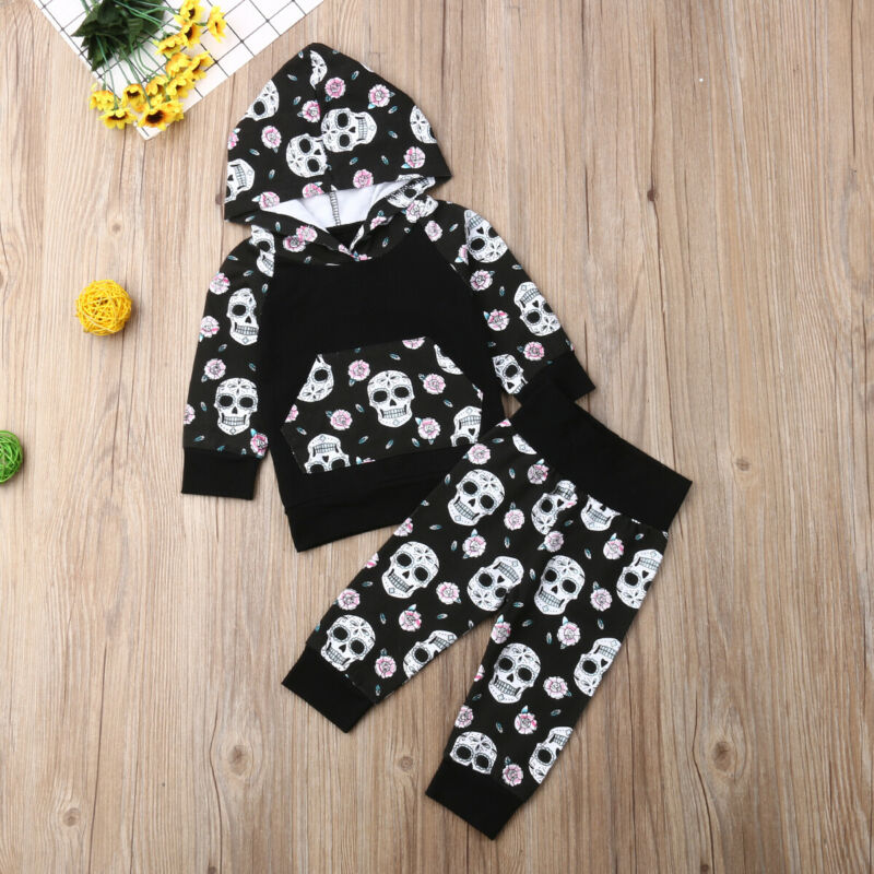 Newborn baby sugar skull clothes suit hooded sweater top+ pants