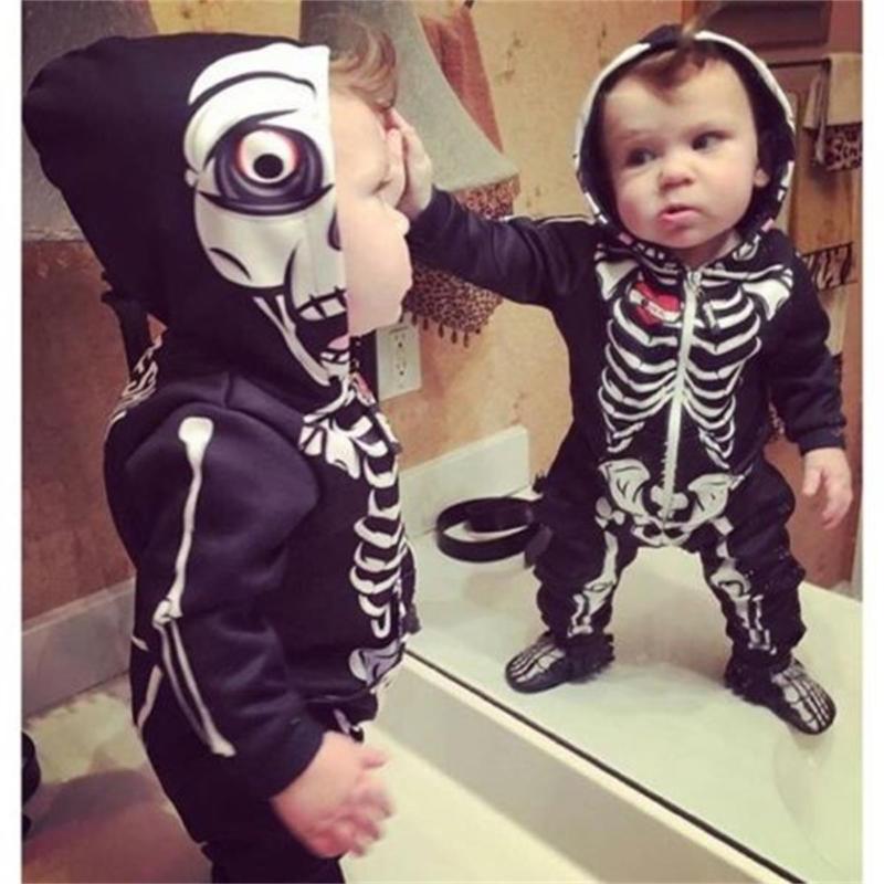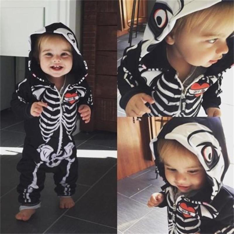 Newborn Kids Baby Girls Boys Romper Skull Hooded Bodysuit Jumpsuit Outfits 0-24M