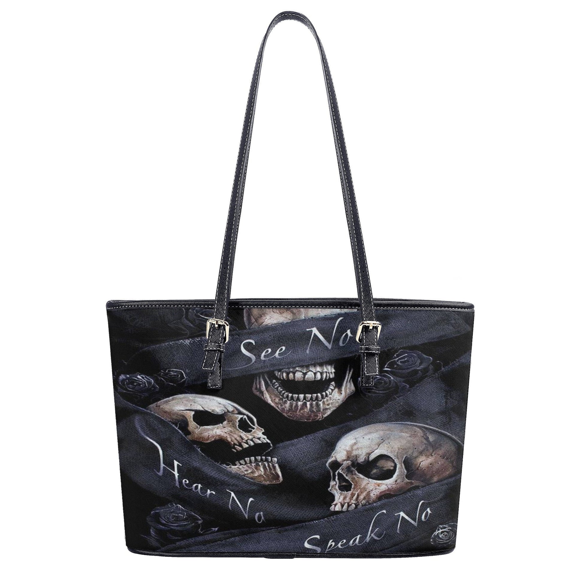 No see no hear no speak skull handbag, rose skull long wallet, floral skull cosmetic wallet, skeleton tote bag halloween tote bag wallet set