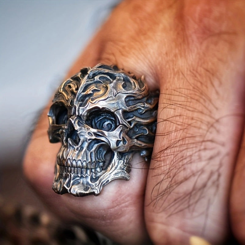 Rock Style Skull Ring with Ghostly Head Design, Perfect for Holiday Parties and Music Festivals, Engraved Ring for Men, Best for Christmas, Perfect for Thanksgiving