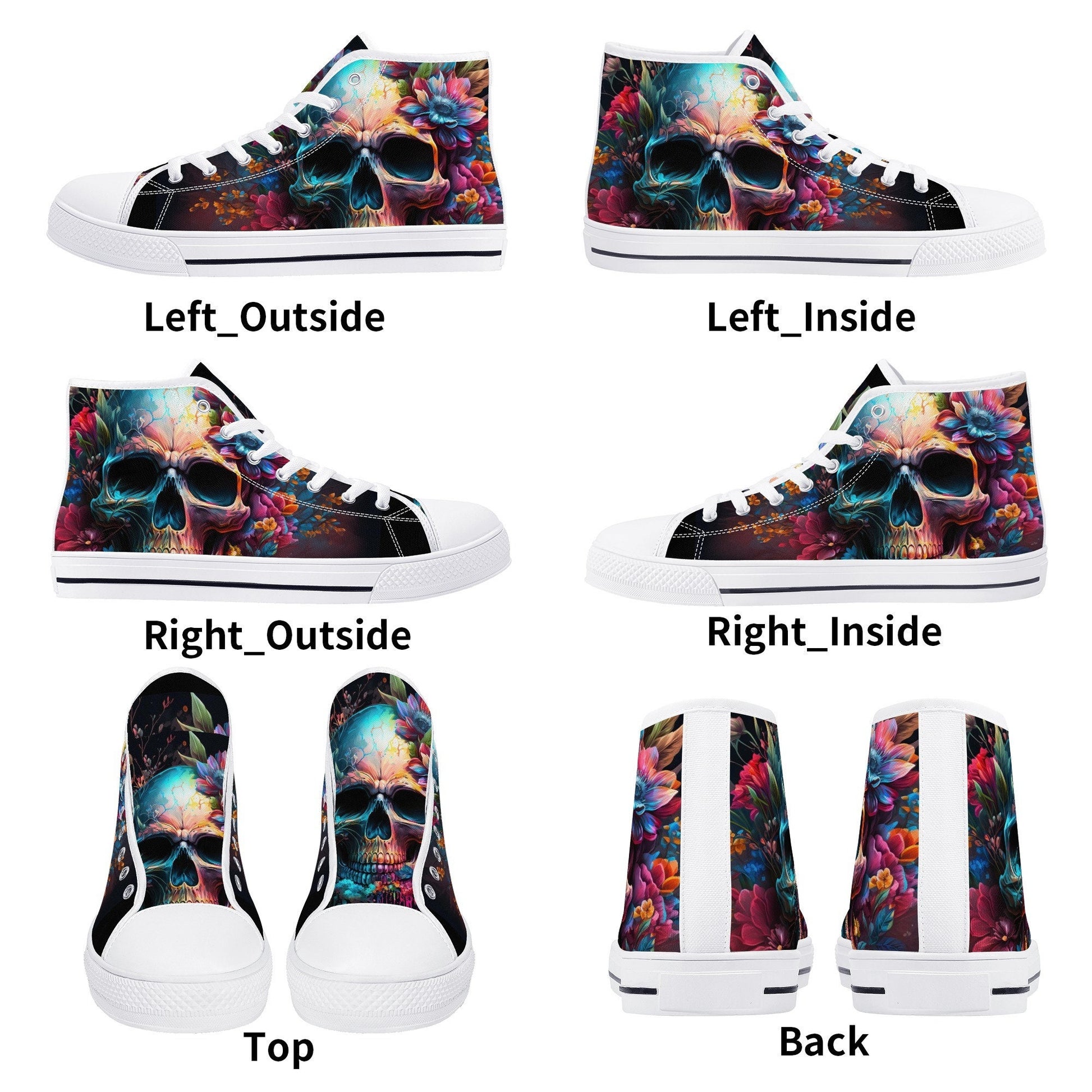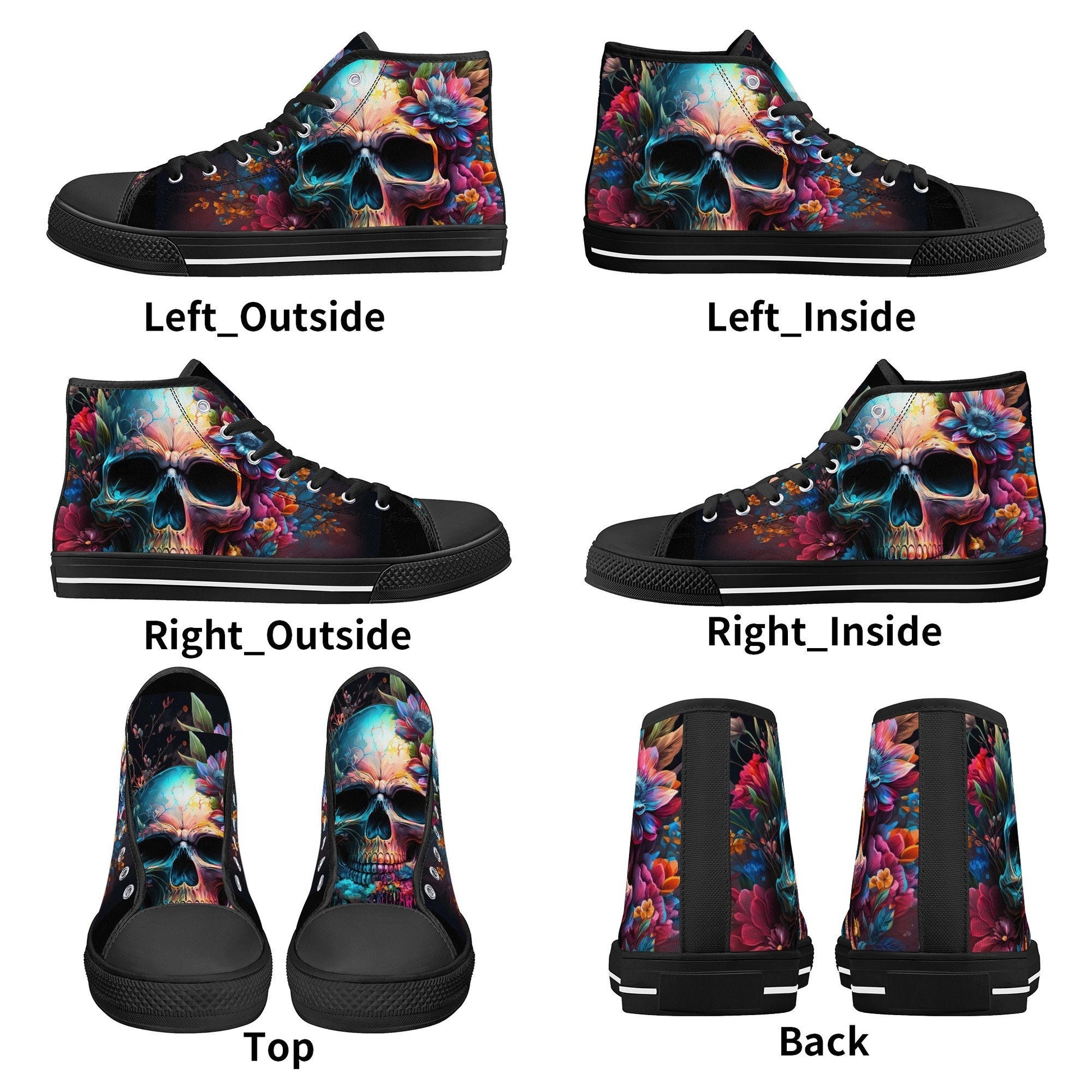 Rose skull causual sneakers, punisher skull shoes, skull in fire shoes gift, biker skull high-top shoes, christmas skull shoes for her, moto