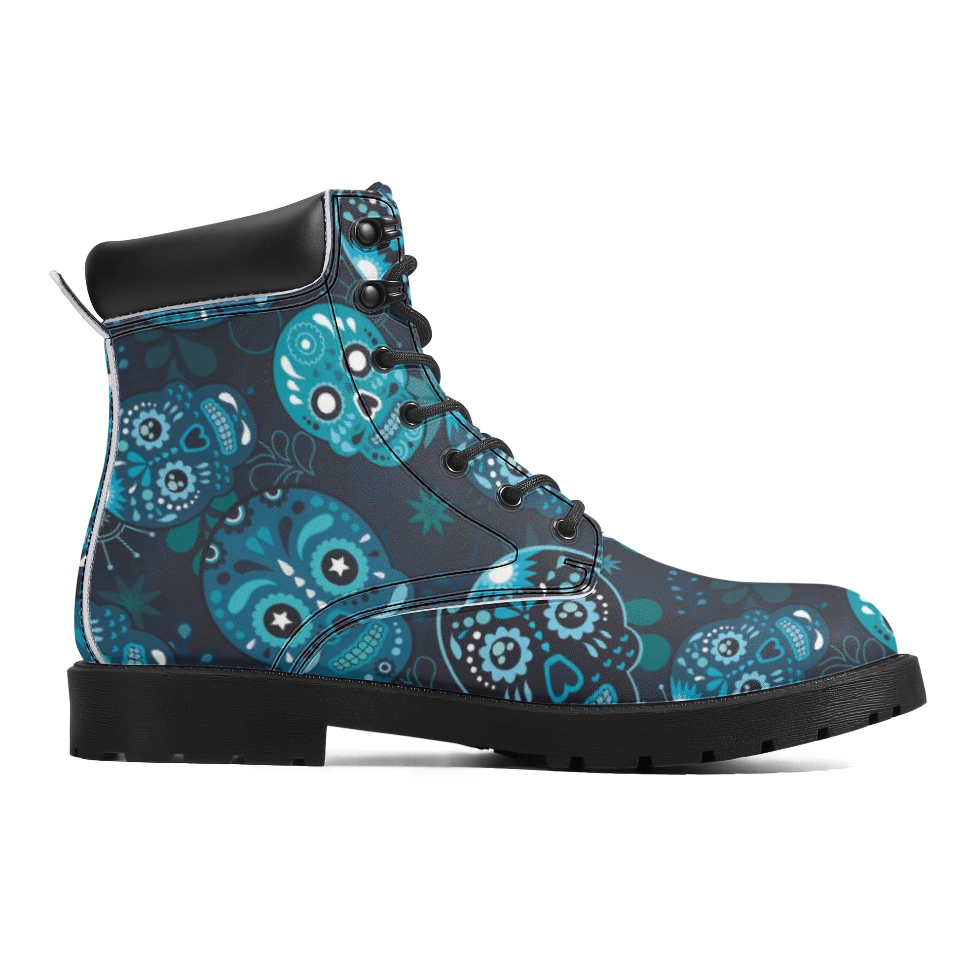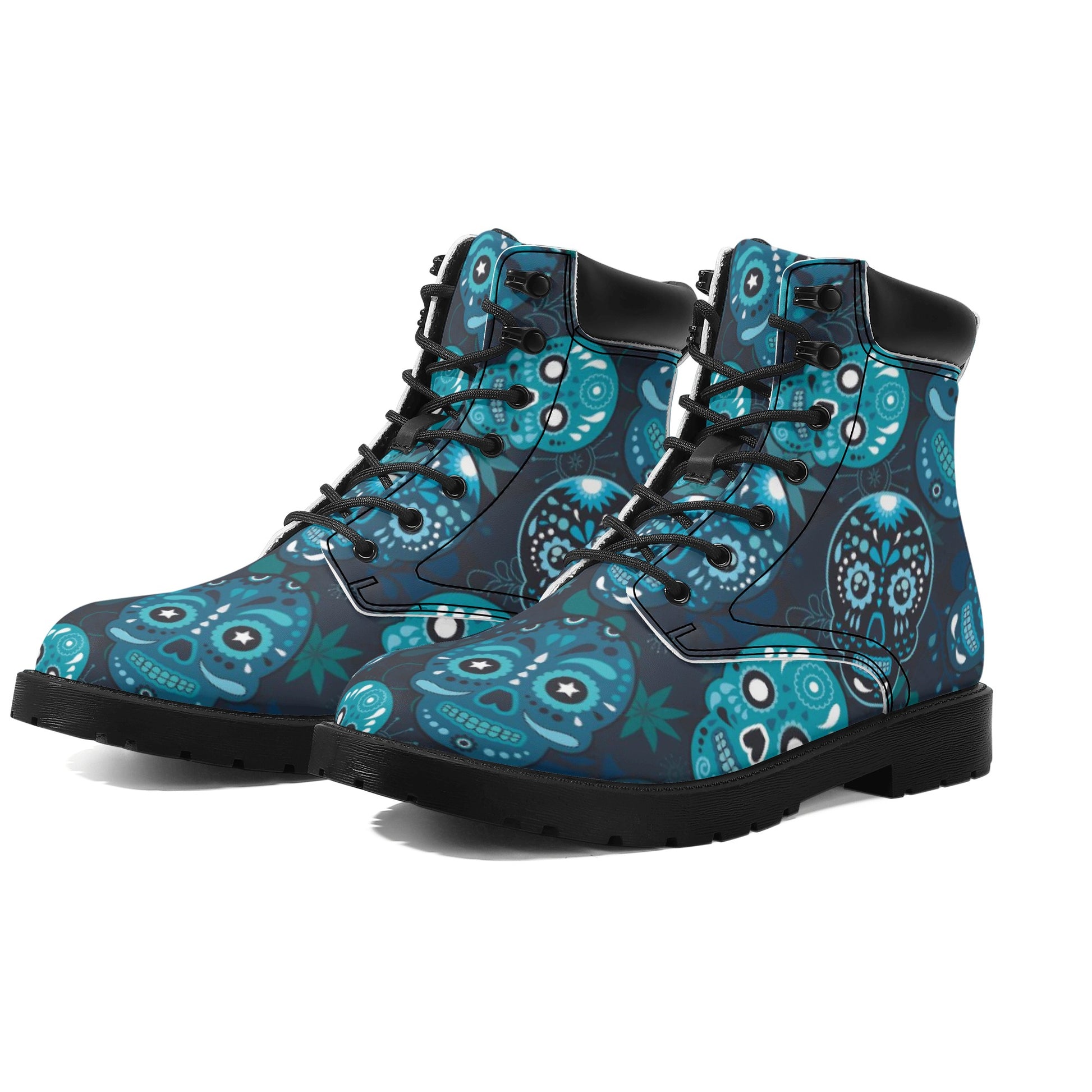Rose skull floral sugar skull Men's All Season Leather Boots