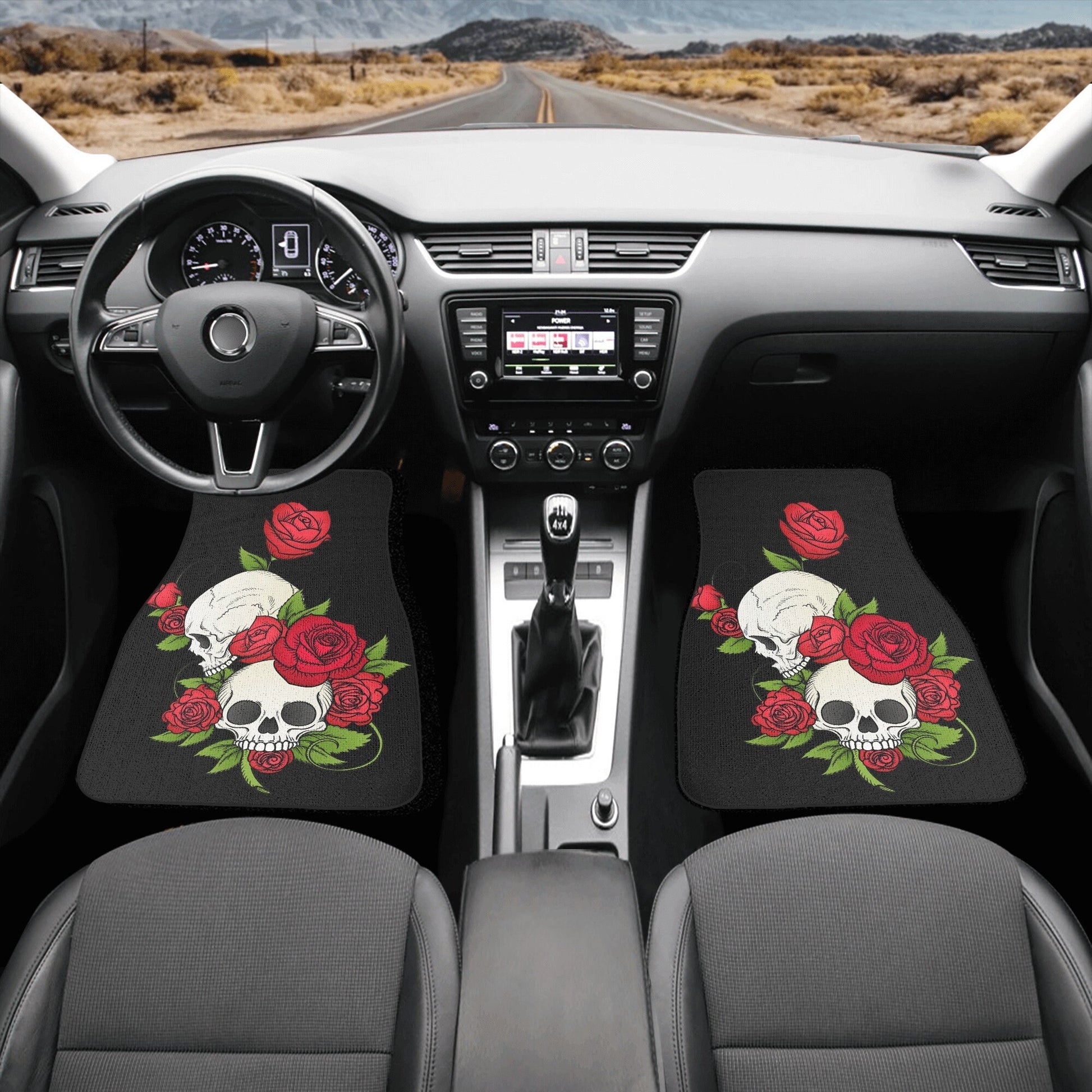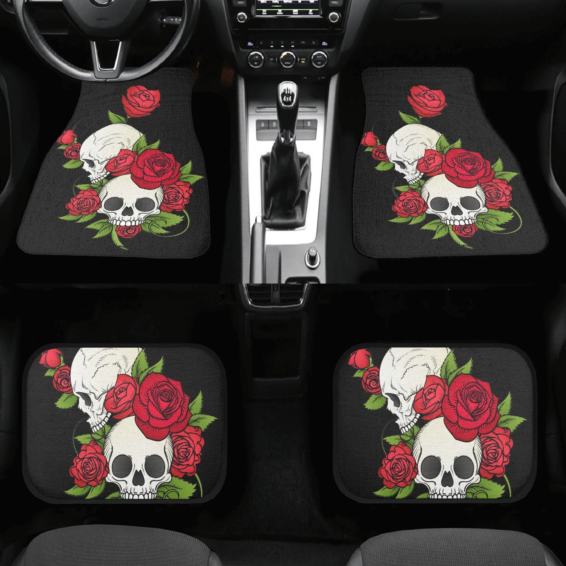 Rose Skull Seat Cover for car, floral skull car mat, Halloween skull seat cover mat for car, skull car seat cover, skull mat cover for car