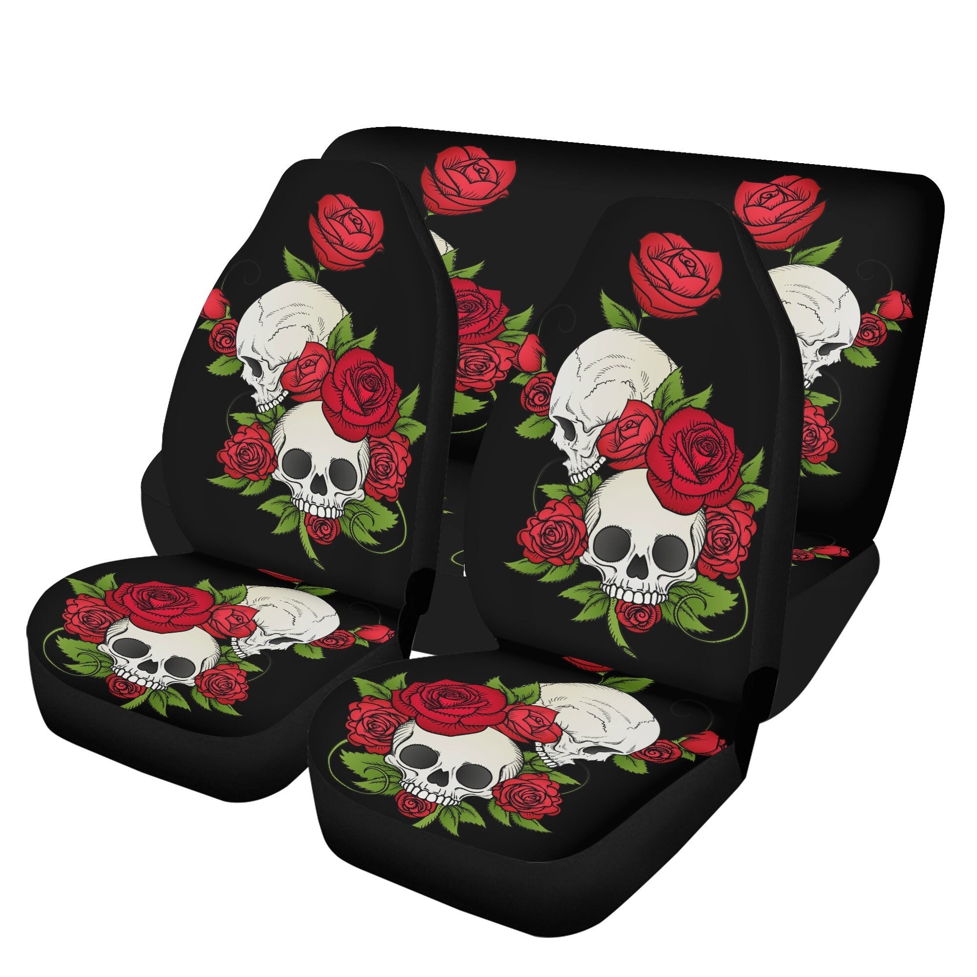 Rose Skull Seat Cover for car, floral skull car mat, Halloween skull seat cover mat for car, skull car seat cover, skull mat cover for car Constructed with high quality polyester micro-fiber fabric for maximum durability and comfort. Add style to your seats while protecting them from spills, stains, tearing, fading and more. Designed for quick and easy installation on most car and SUV bucket style seats - no tools required. Elastic backing and fastening system ensures a snug and secure universal fit on most standard car and SUV seats. Not for use on seats with integrated airbags, seatbelts or armrests. Size: Front seat cover: 19 in x 20 in x 31 in x 18 in (please see photo for detail) Back seat cover: 23 in x 30 in x 47 in (please see photo for detail) ==== Car mats All of our Front And Back Car Mats are custom-made-to-order and handcrafted to the highest quality standards. Add style to your car while keeping your floors clean and protected! Features a durable and easy-to-clean custom print constructed from a waterproof polyester material. Rubberized backing with black finished edges ensures a secure grip and skid-free placement. Keep your car floors protected from dirt, spills and daily wear and tear with these stylish custom printed car floor mats! Size: Front mat: 26in x 17in Back mat: 13in x 17 (see detail in product images) ======== All products in our store are only manufactured upon receiving an order from the customer. Please carefully review the product description and dimensions in the illustrative images before placing an order. The following cases are not eligible for return/exchange: 1. The product you receive matches the description. 2. The product dimensions (with illustrative images describing the dimensions) you receive match the description. 3. The product has been customized as per your request (e.g., printed with your name/image).
