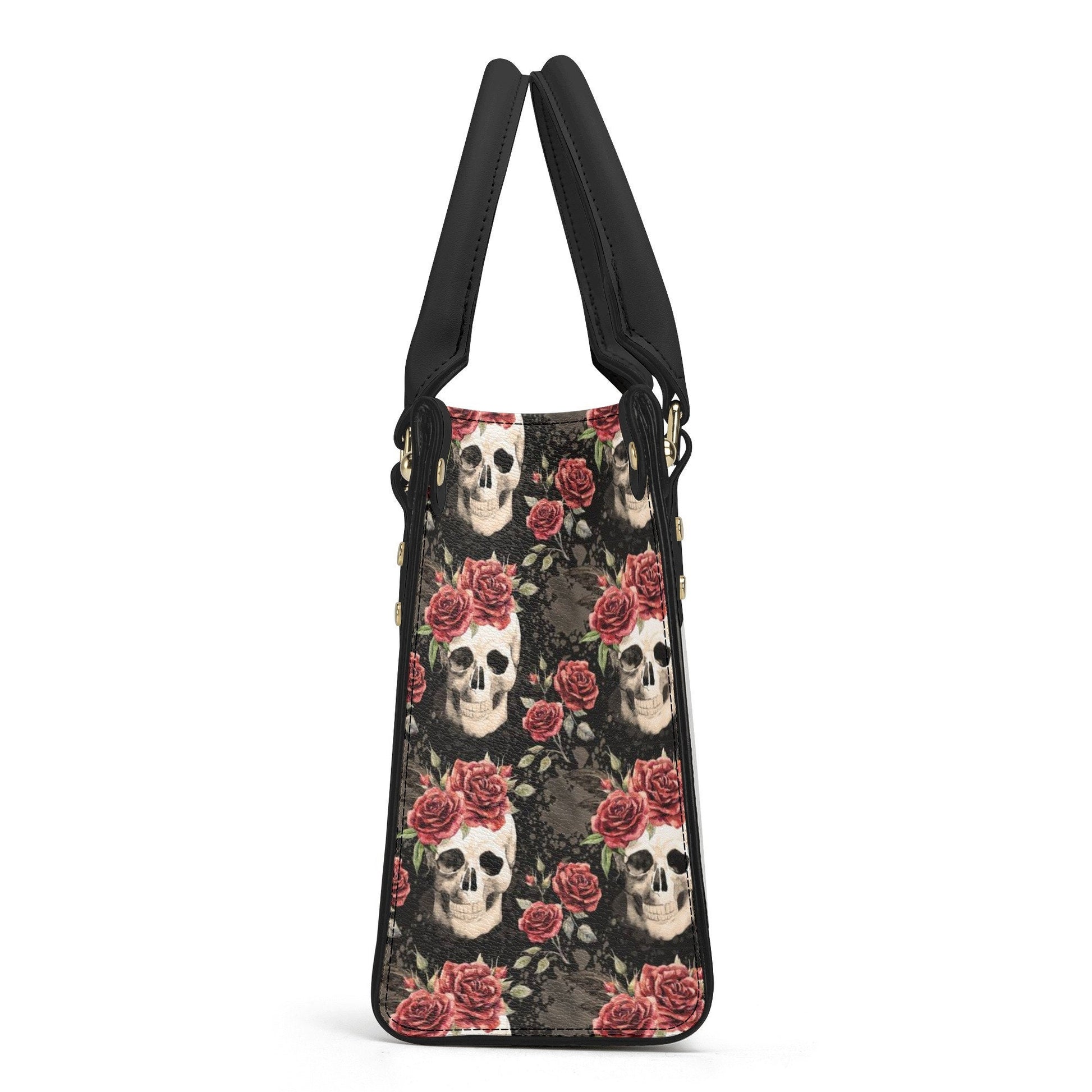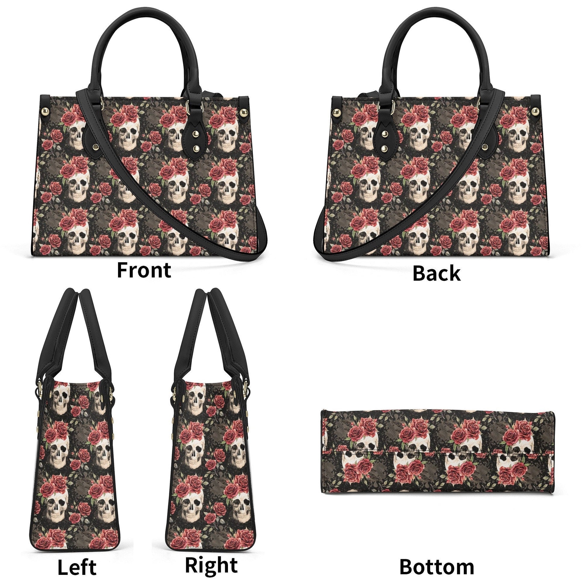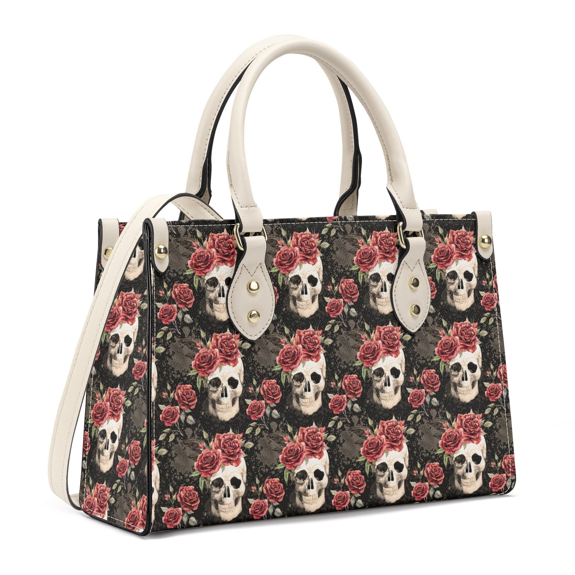 Floral skull shoulder bag, grim reaper women's handbag, punisher skull travel bag, horror crossbody bag, skull with scythes travel bag, motorcycle skull women's purse, biker skull messenger bag, skull in fire crossbody bag, motorcycle skull handbag with strap, flower skull handbag, evil large tote b