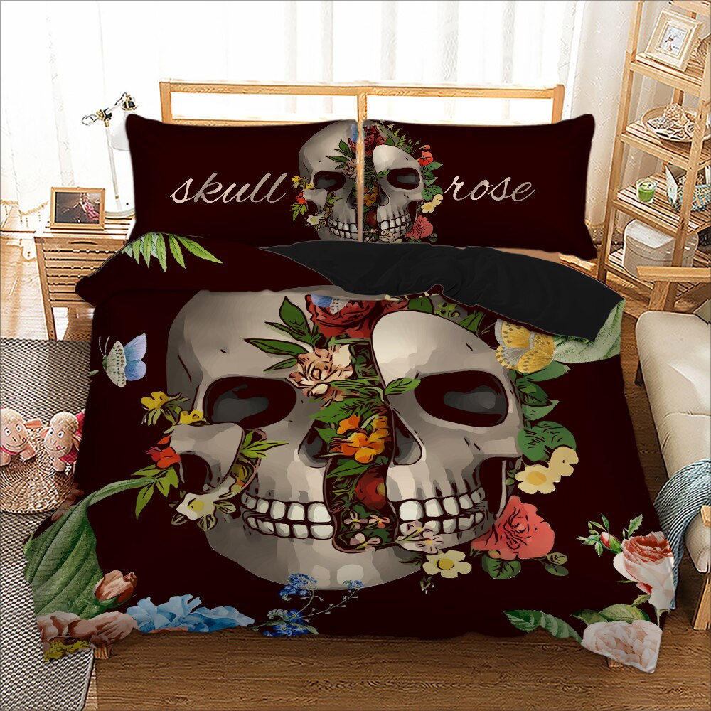 Rose sugar skull printed Bedding Set for comforter Queen King