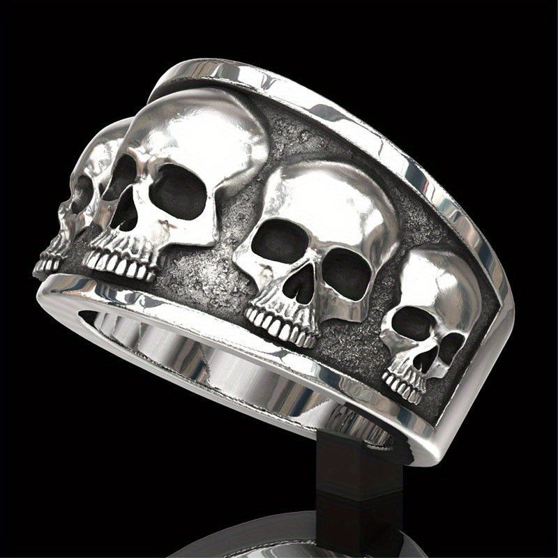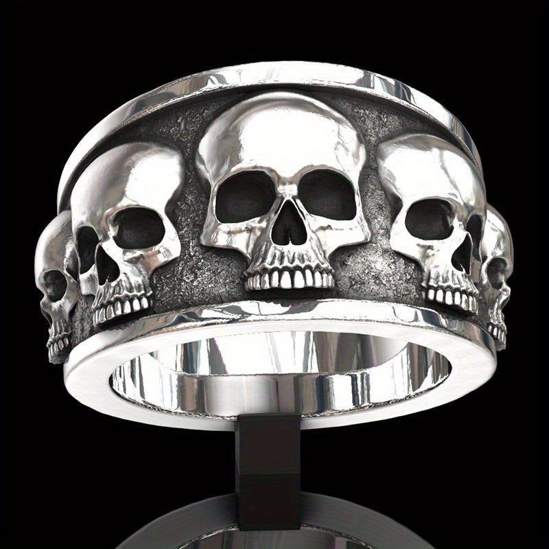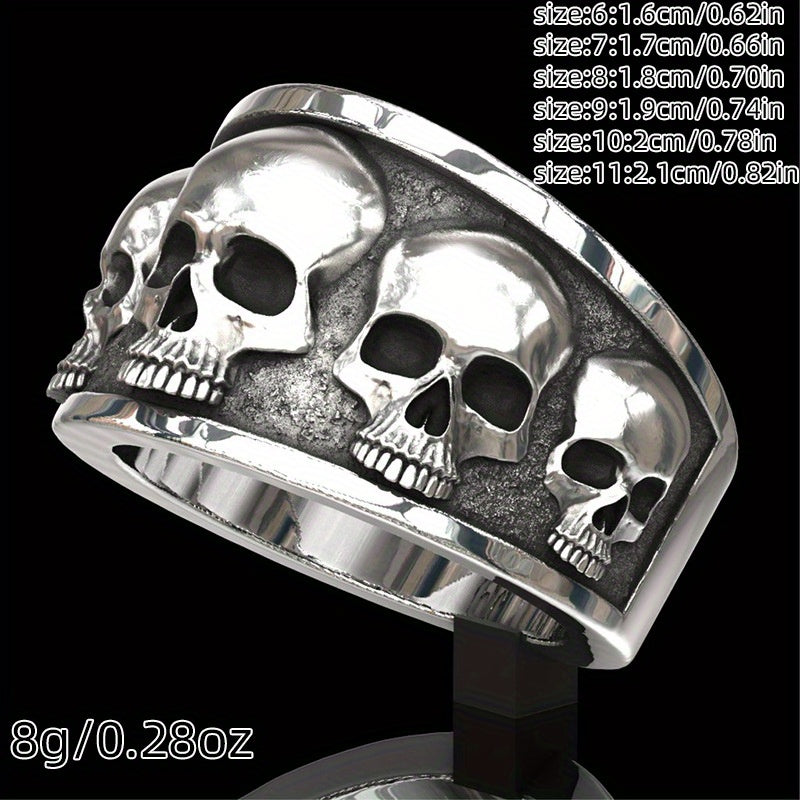 [Size 6-11 Stainless Steel Ring] 1Pc Fine Skull Geometric Personalised Punk Stainless Steel Antique Silvery Ring Men Woman Daily Banquet Bar Size 6-11