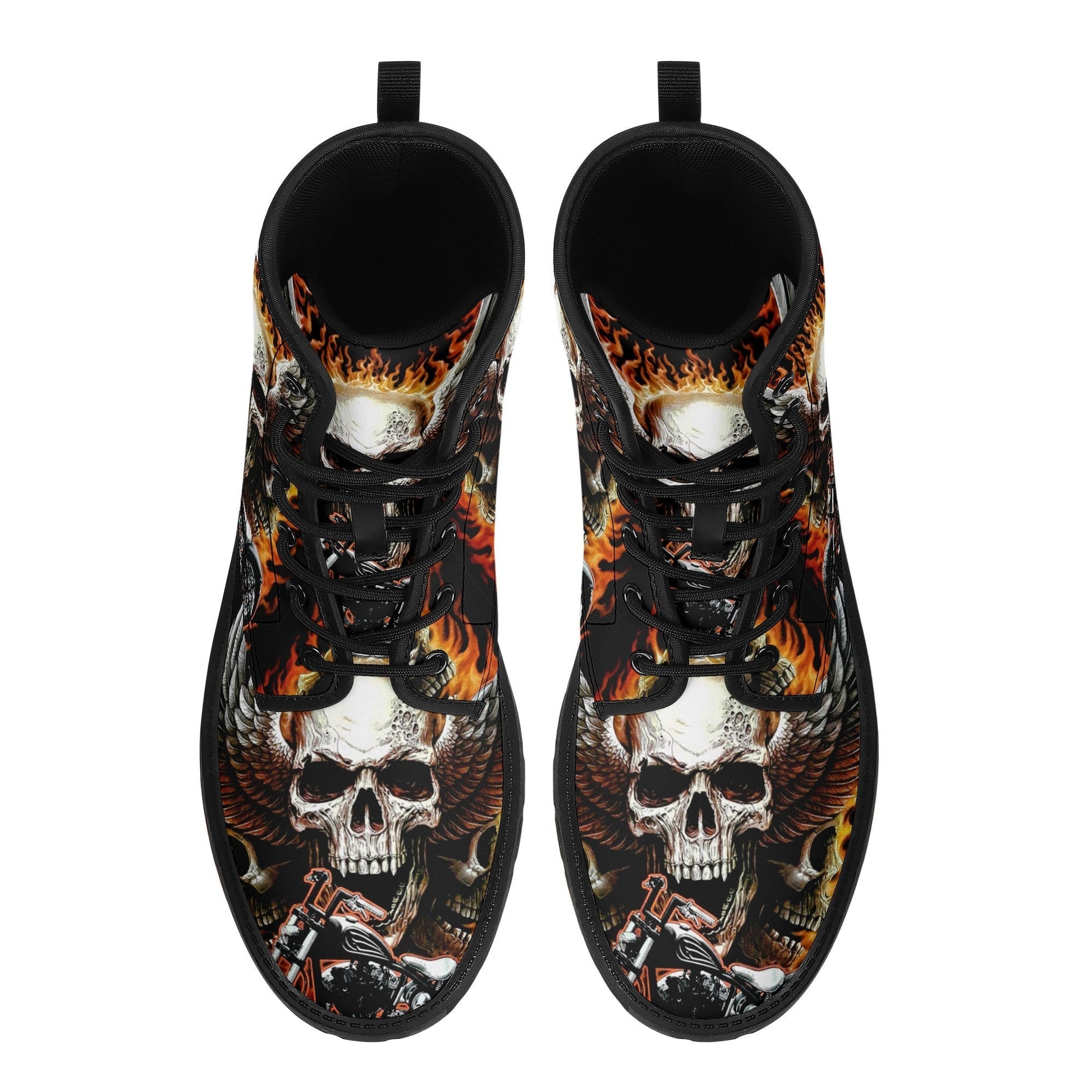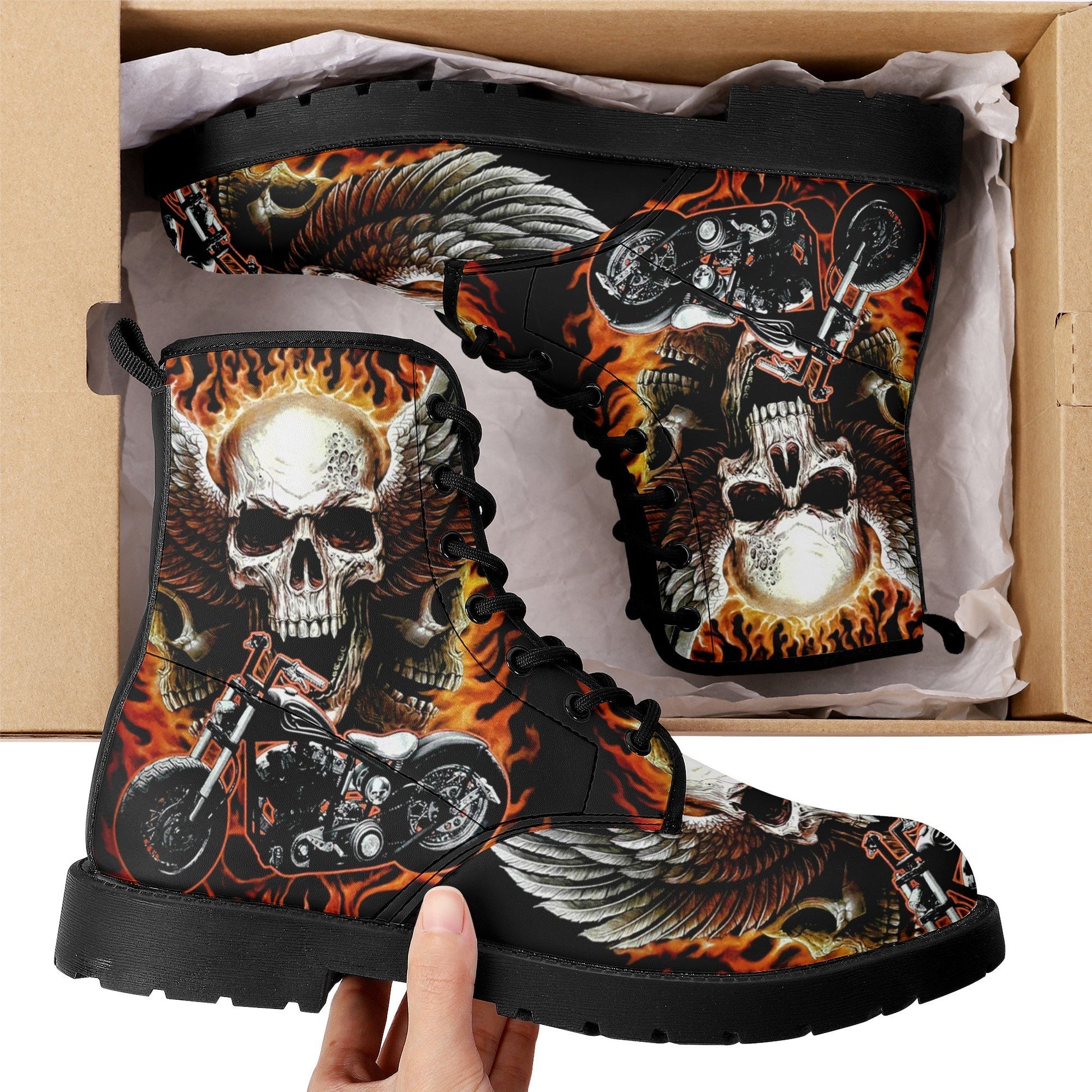 Skull boots Streetwear shoes for biker, Gothic skull women men's boots Goth death skeleton men boots, Halloween punisher skull leather boots, Grim reaper skull boots Streetwear shoes, Gothic punisher skull women boots Goth skeleton men boots, Halloween punisher skull leather boots