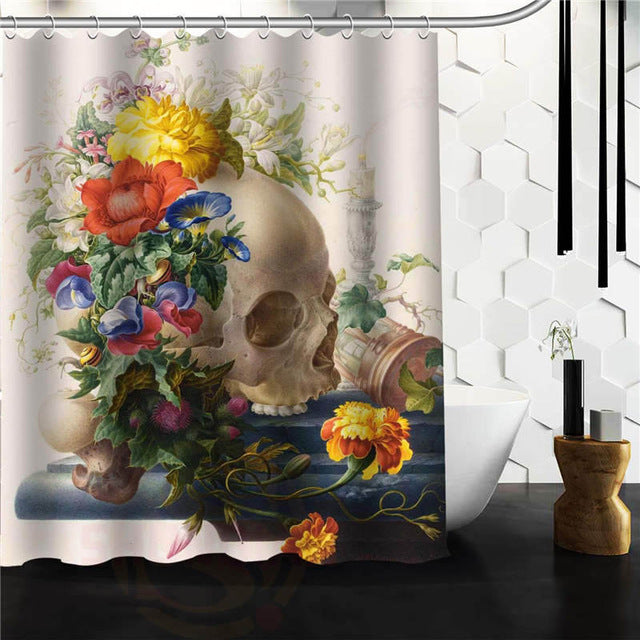 Skull Shower Curtains Bathroom Mildewproof Polyester Curtains Waterproof Fabric with Hooks