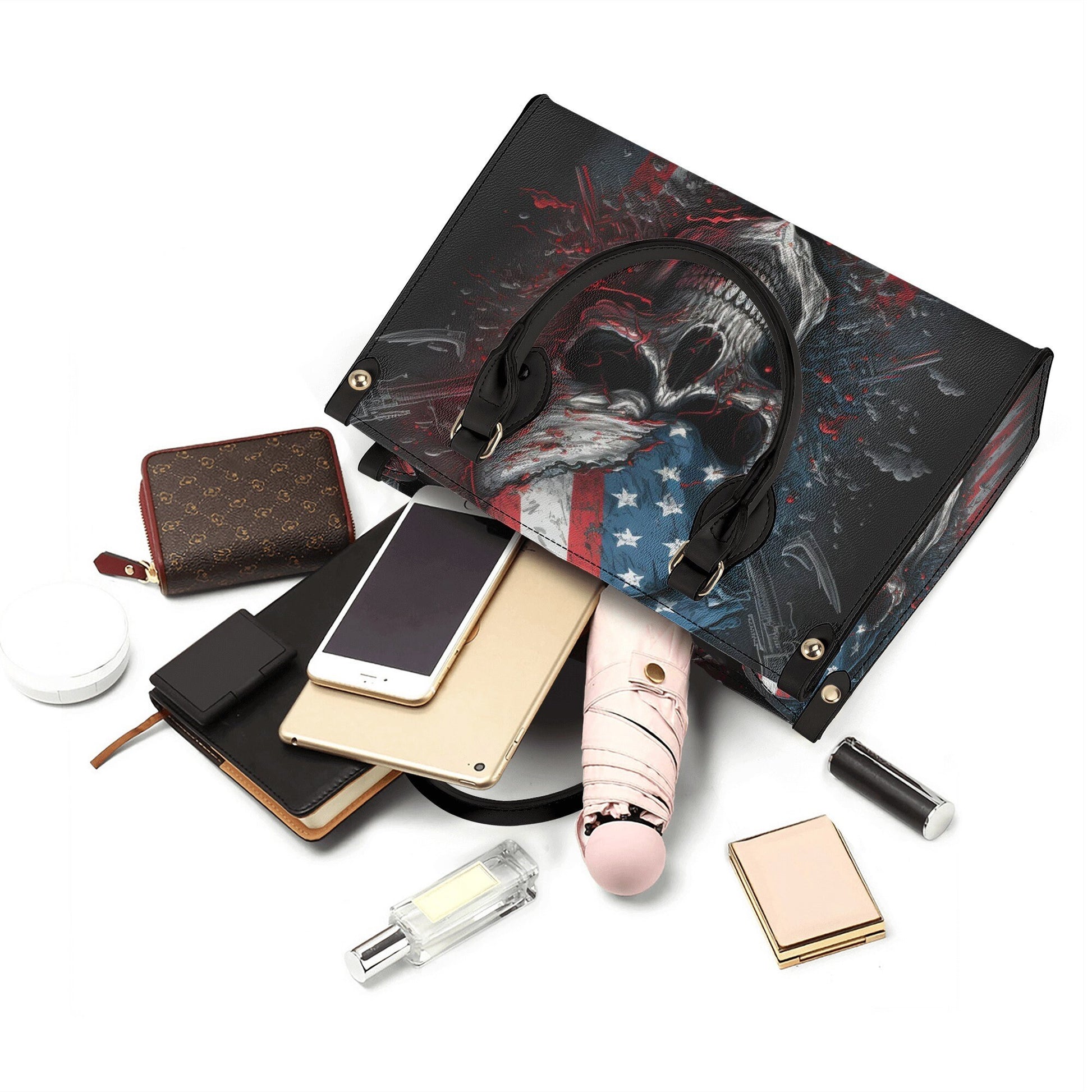 Skull with scythes purse, reaper skull women's handbag, halloween travel bag, skeleton tote bag, Spooky Halloween large tote bag, hooded sku