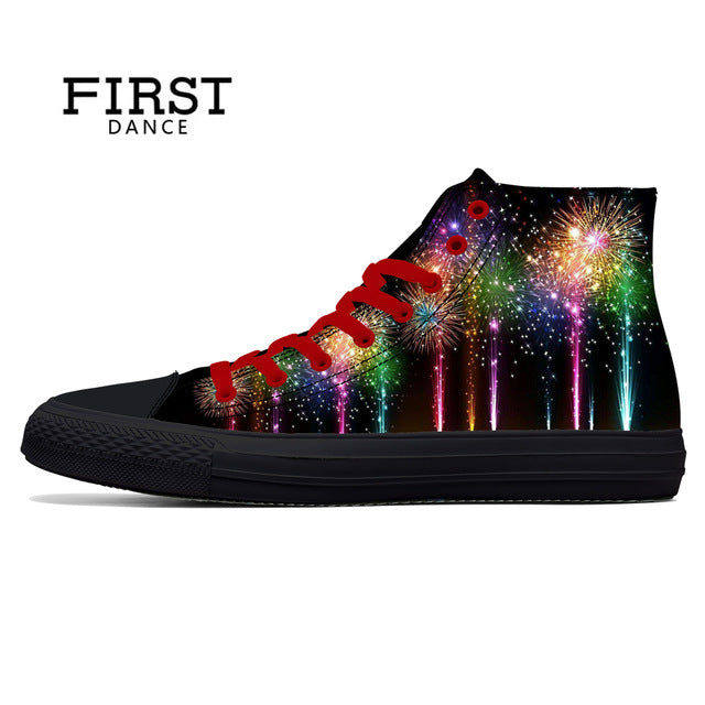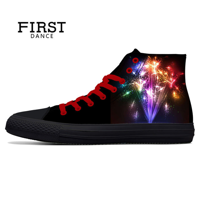 Spring Fire Skull Printed Shoes Black Mens High Top Classic Canvas Shoes 3D Colorful