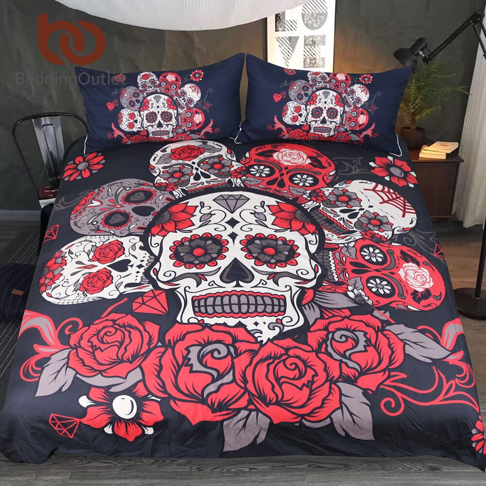 Sugar Skull Bedding Set Roses Duvet Cover With Pillowcases Floral