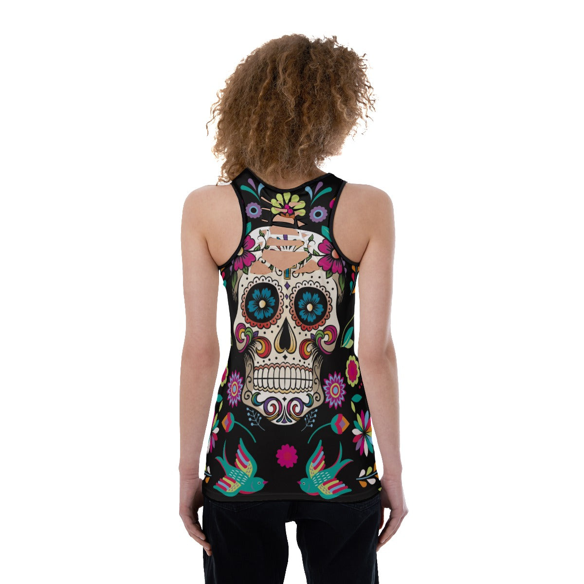 Sugar skull cinco de mayo Women's Back Hollow Tank Top