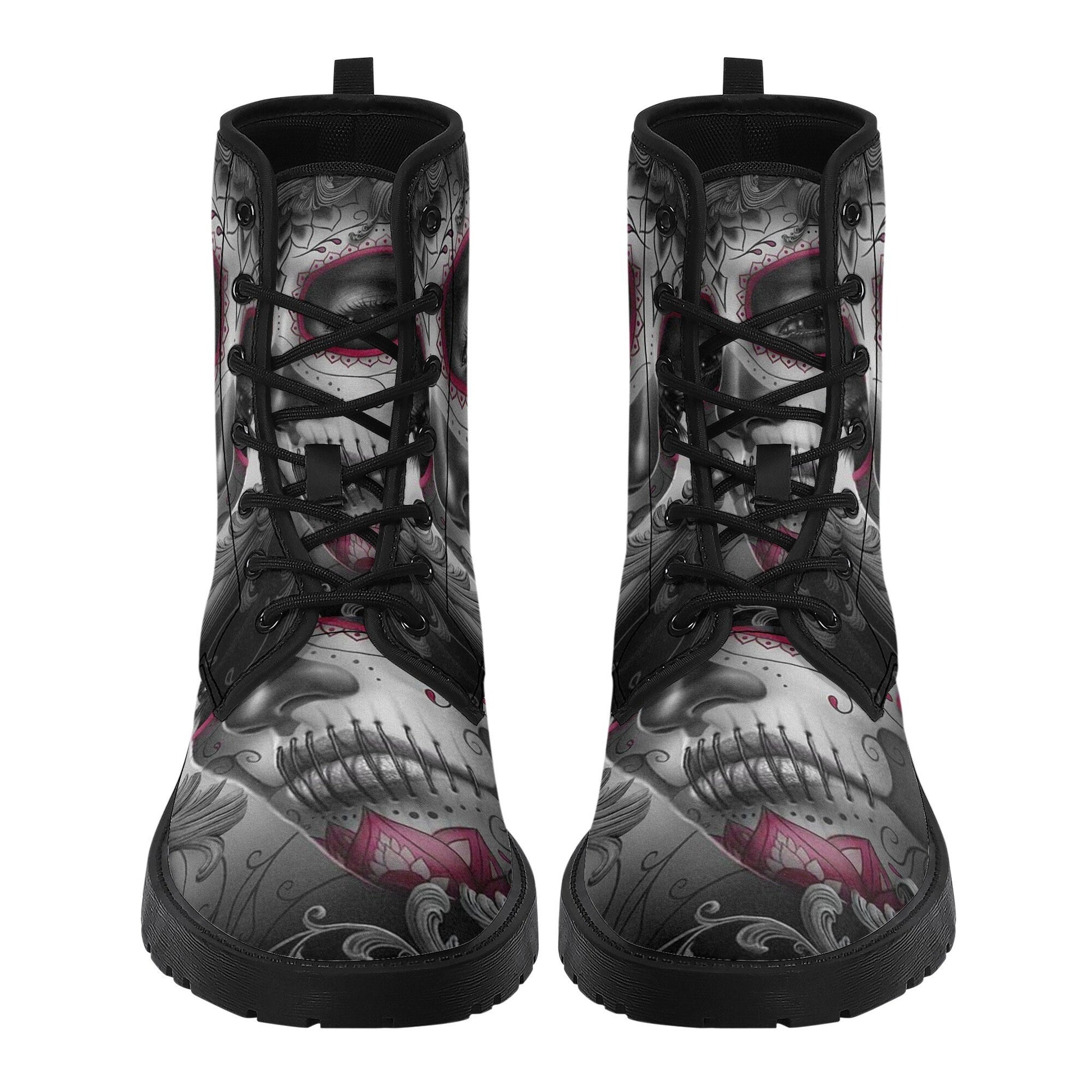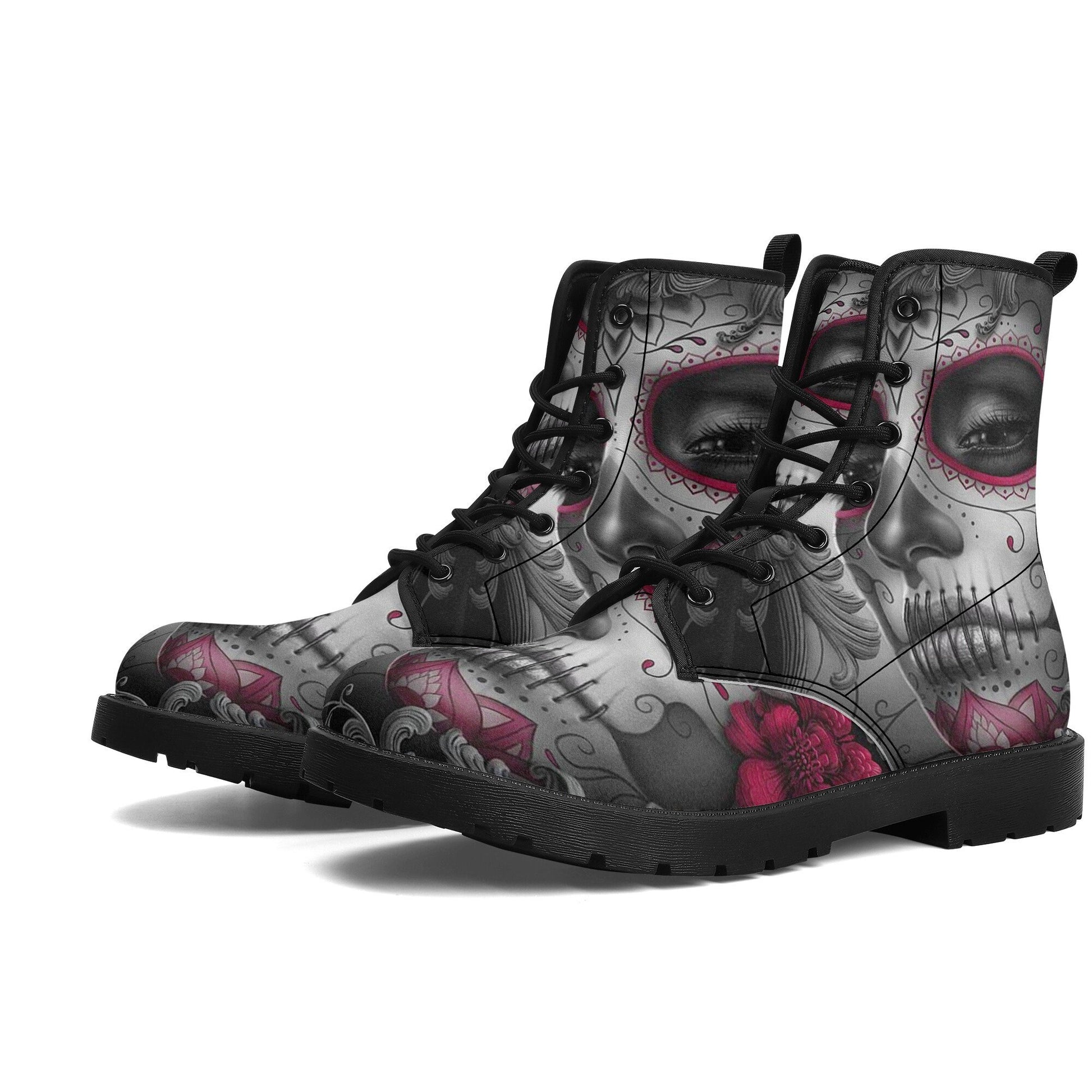 Sugar skull day of the dead girl leather boots, Candy skull girl boots men women Dia de los muertos skull girl boots shoes sugar skull boots WOMEN SIZE Size______Foot Length (cm) US5_______23.1cm US5.5_____23.8cm US6_______24.4cm US7_______25.1cm US8_______25.7cm US9_______26.4cm US10______27.0cm US11______27.7cm US11.5____28.3cm US12______29.0cm MEN SIZE Size______Foot Length (cm) US5_______25.1cm US6_______25.7cm US7_______26.2cm US7.5_____27.1cm US8.5_____27.7cm US9.5_____28.3cm US10_______29.0cm US11______29.6cm US12_____30.3cm US13______30.9cm US14______31.6cm High quality eco-friendly synthtic leather material on waterproof boots New style for black gum rubber outsole and black rear pull-loop Breathable EVA foamed insole anti-heat, anti-moisture, anti-corrosion Mesh fabric and foamed lining with lace-up closure for a snug fit Platform measures approx 0.75”for traction and durability A groovy colour explosion for your feet in our signature unisex combat boots Designed for fashion people, stylish and personalized The Upper Made of PU,the sole made of rubber. Soft PU make it comfortable and soft. Two different colors of sole. Rear pull-loop make the boots easy to put on. Season: Autumn, Spring, Winter Occasion: Outdoor, Daily Gender:Women Care Instruction: Spot clean only ======== All products in our store are only manufactured upon receiving an order from the customer. Please carefully review the product description and dimensions in the illustrative images before placing an order. The following cases are not eligible for return/exchange: 1. The product you receive matches the description. 2. The product dimensions (with illustrative images describing the dimensions) you receive match the description. 3. The product has been customized as per your request (e.g., printed with your name/image).