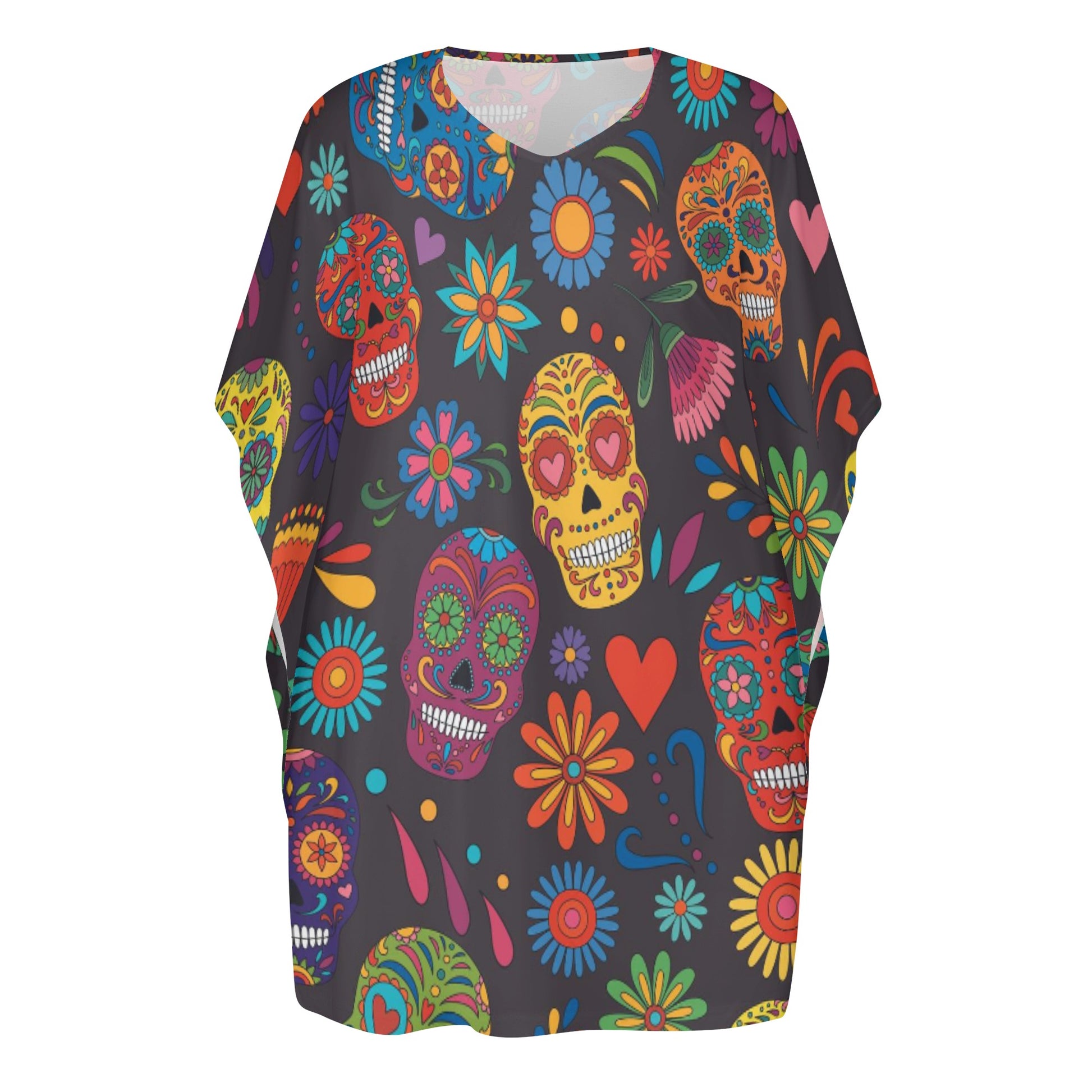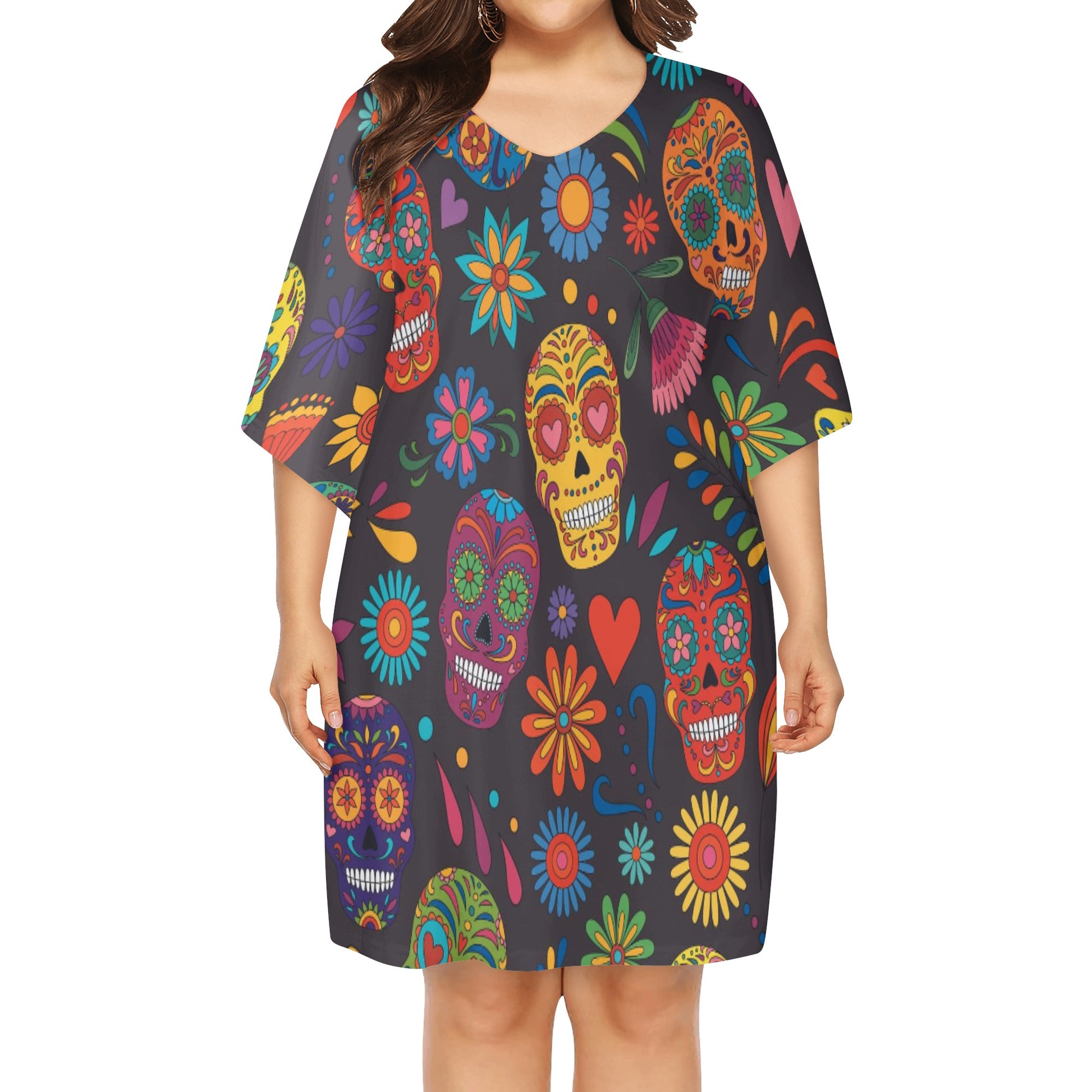 Sugar skull day of the dead mexican skull Women's Daily Plus Size Loose Dress