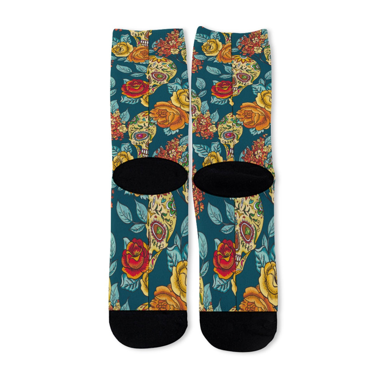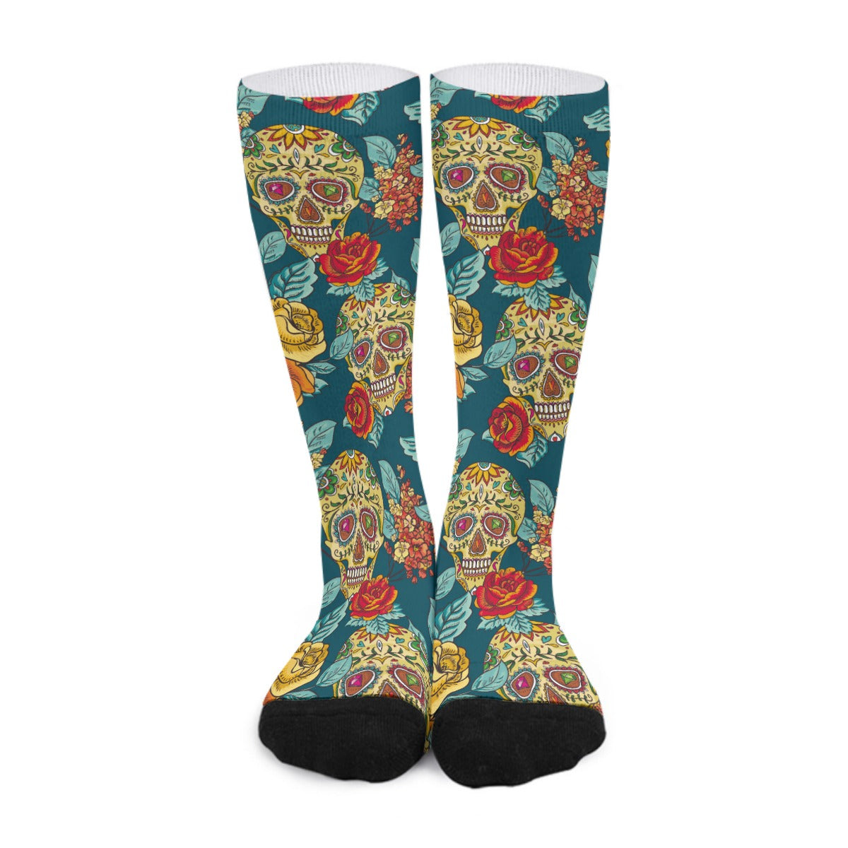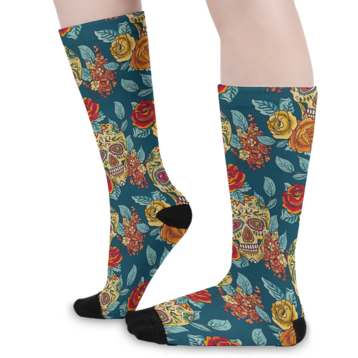 Sugar skull Day of the dead Unisex Long Socks, dia de los muertos socks, calaveras socks, skull christmas socks, floral skull socks