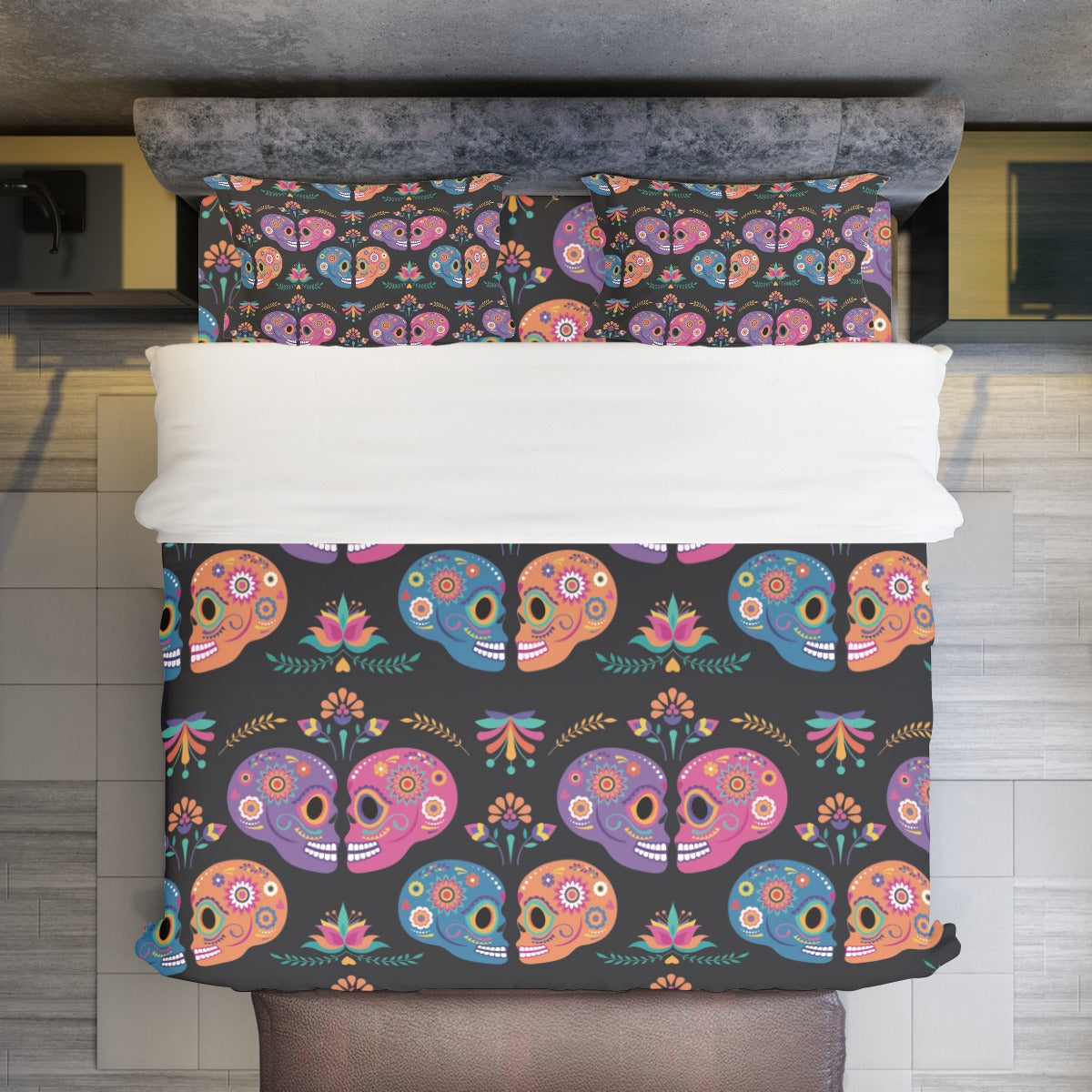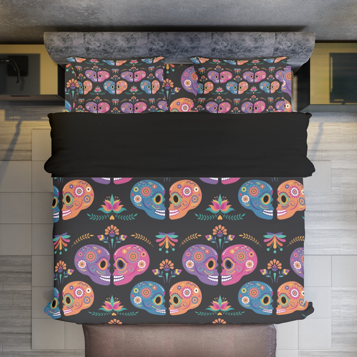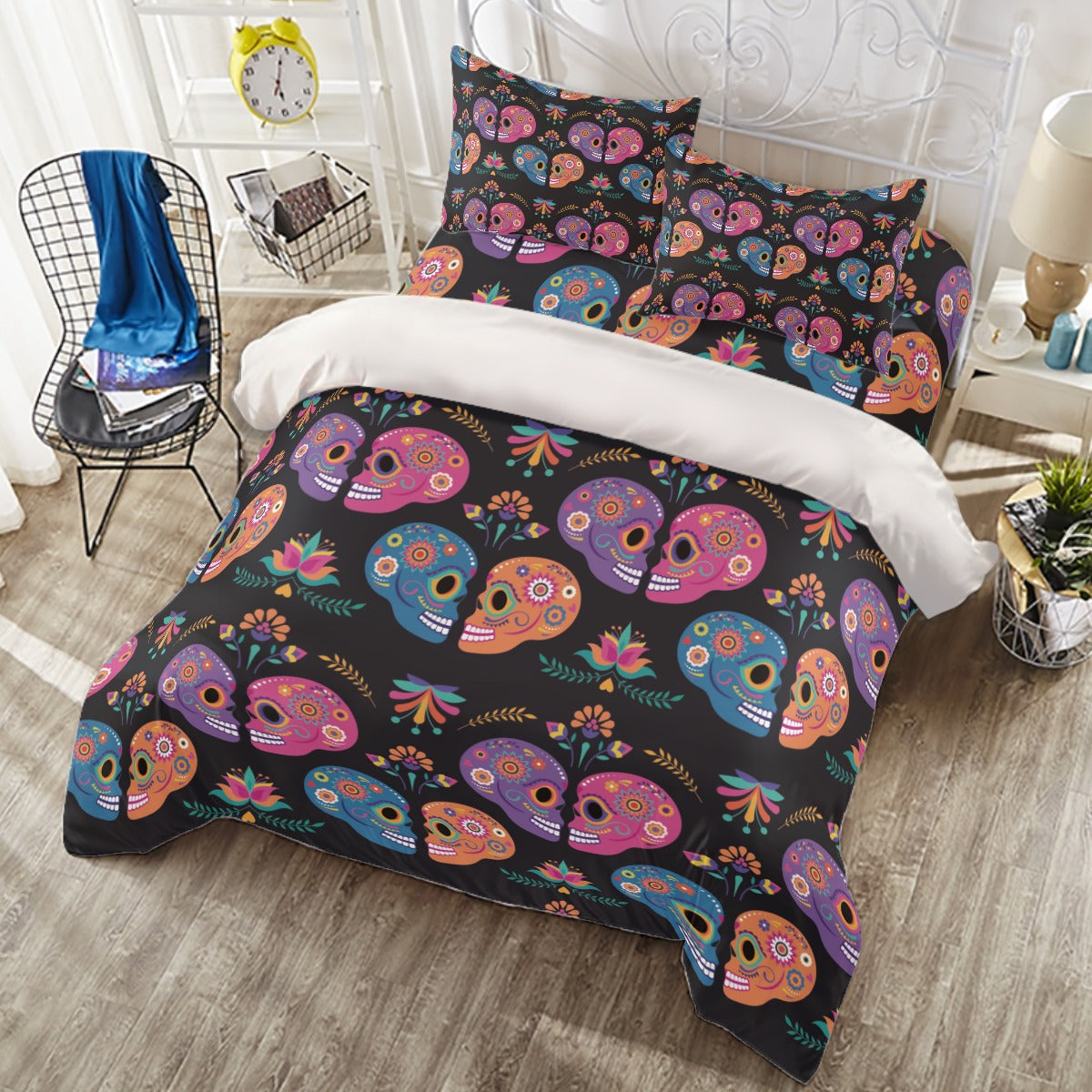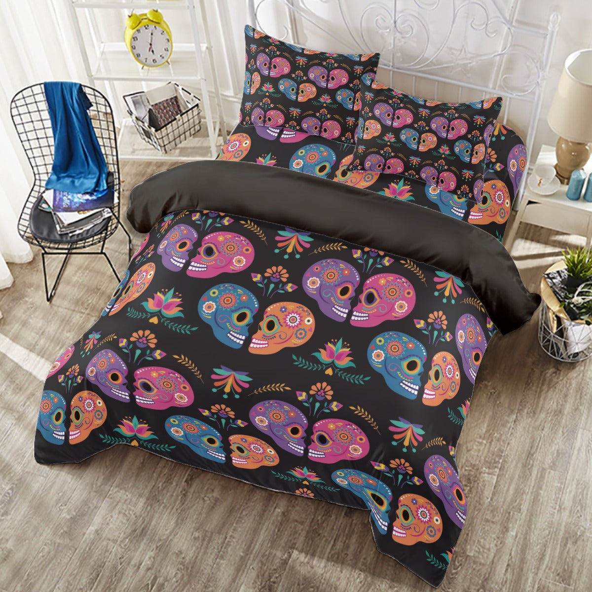 Sugar skull love Four-piece Duvet Cover Set, Mexican sugar skull dia de los muertos skeleton Four-piece Duvet Cover Set, Gothic sugar skull floral skeleton Four-piece Duvet Cover Set
