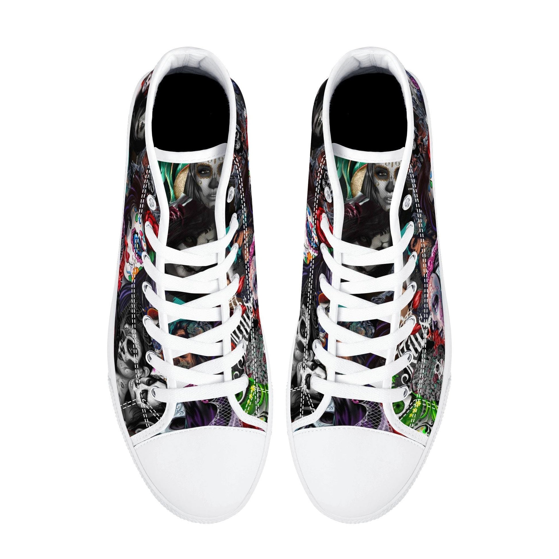 Sugar skull shoes, day of the dead hight top sneakers, dia de los muertos skull sneakers gift, day of the dead high top shoes
