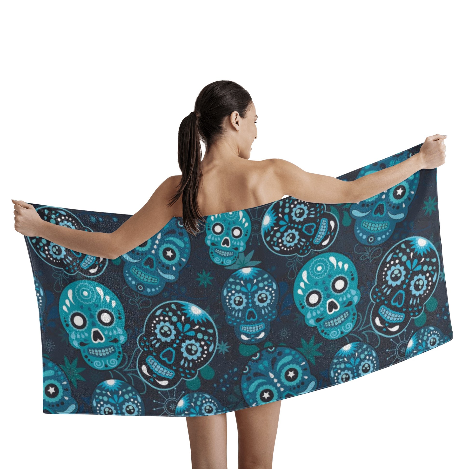 Sugar skull bath towel, day of the dead bath towel, Dia de los muertos bathroom bath towel, grim reaper towel, Calaveras Mexican skull bath towel, skeleton bath towel, gothic bath towel, Halloween bath towel
