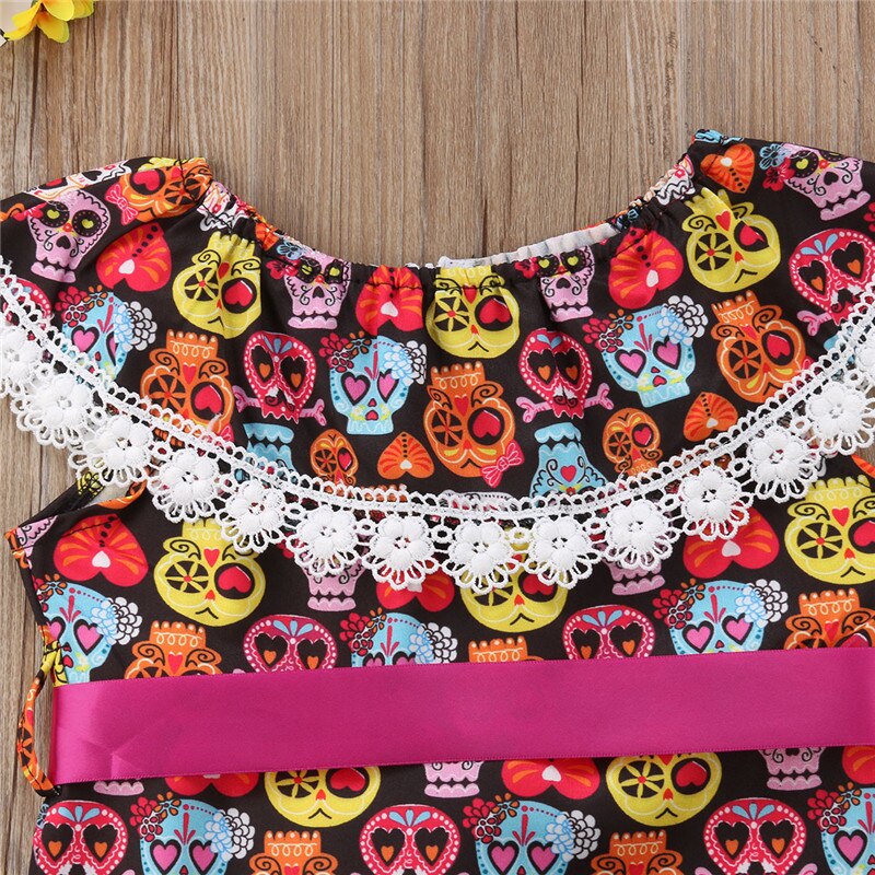 Toddler Baby Girls Dress Skull Print Bow-knot Lace Ruffles Off Shouler Dresses Princess