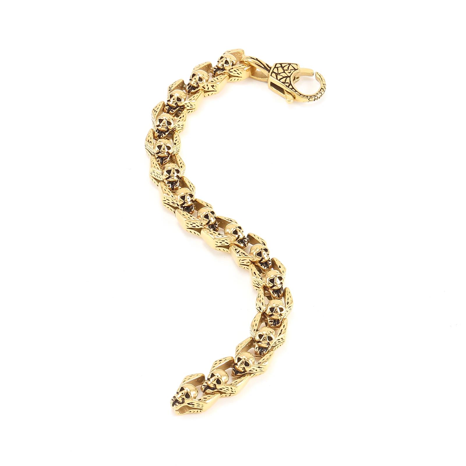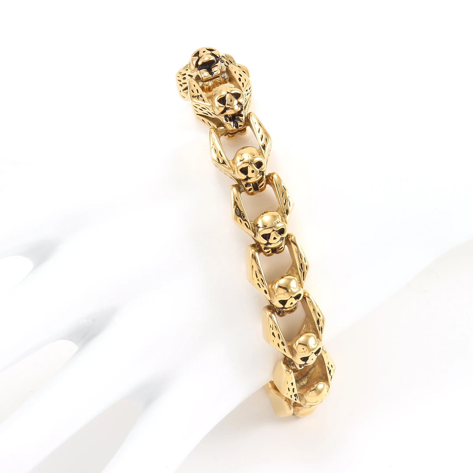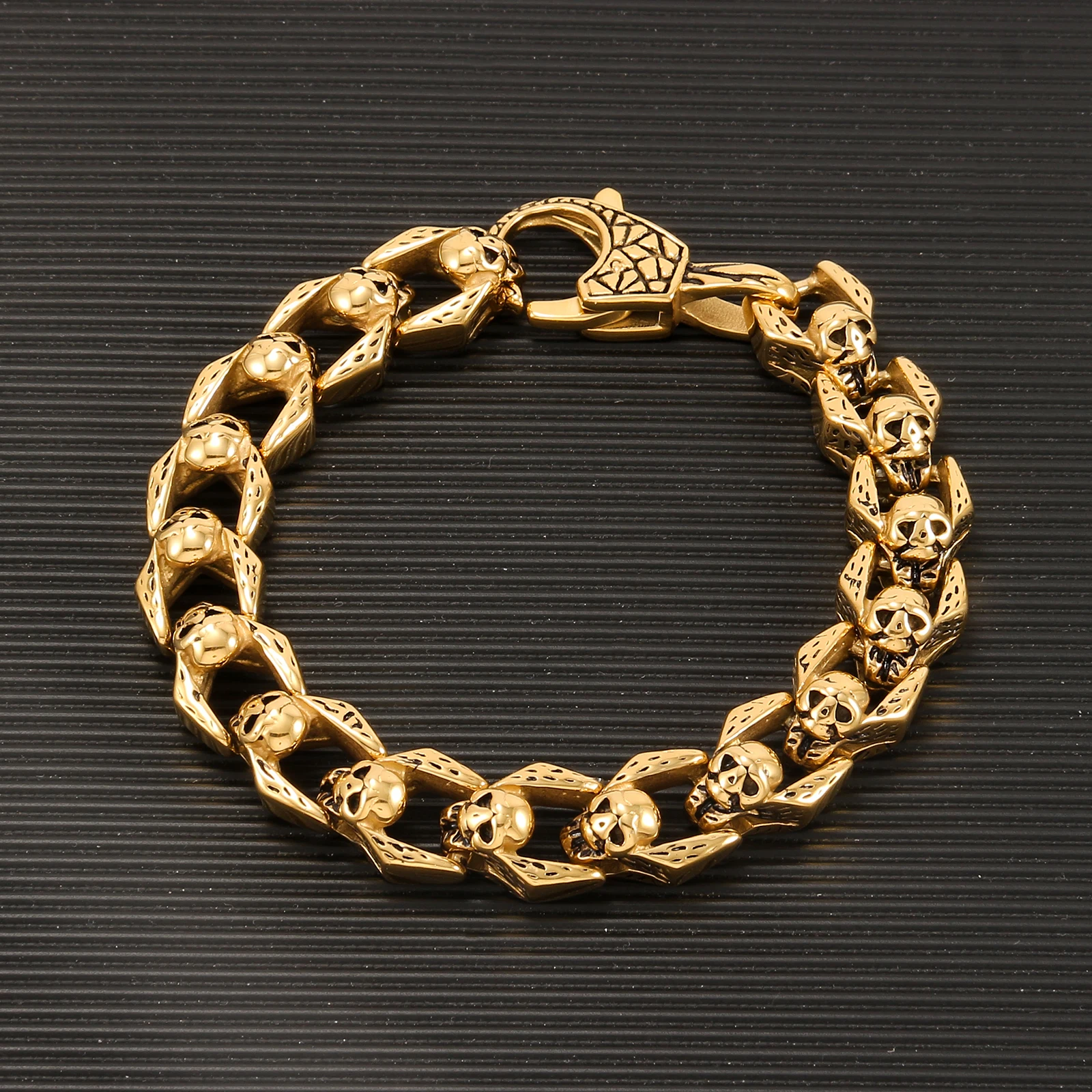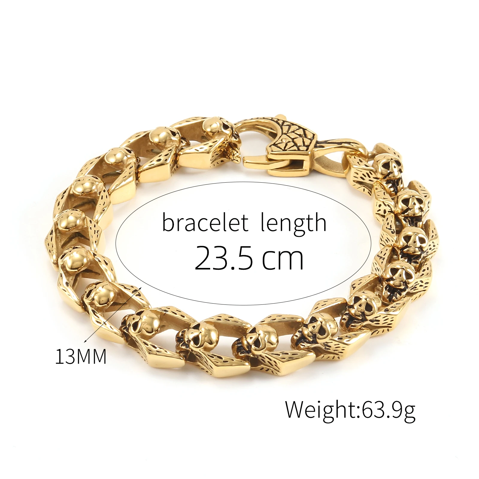 Vintage Gold Skull Bracelets for Women Men Halloween Stainless Steel Chain Fashion Jewelry Accessories Gifts Waterproof