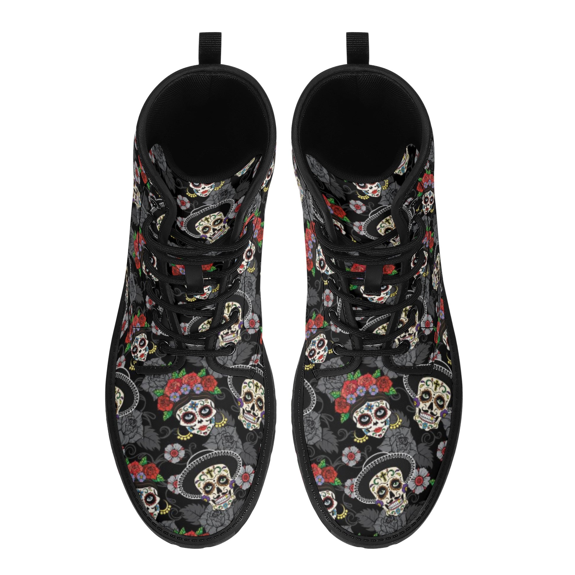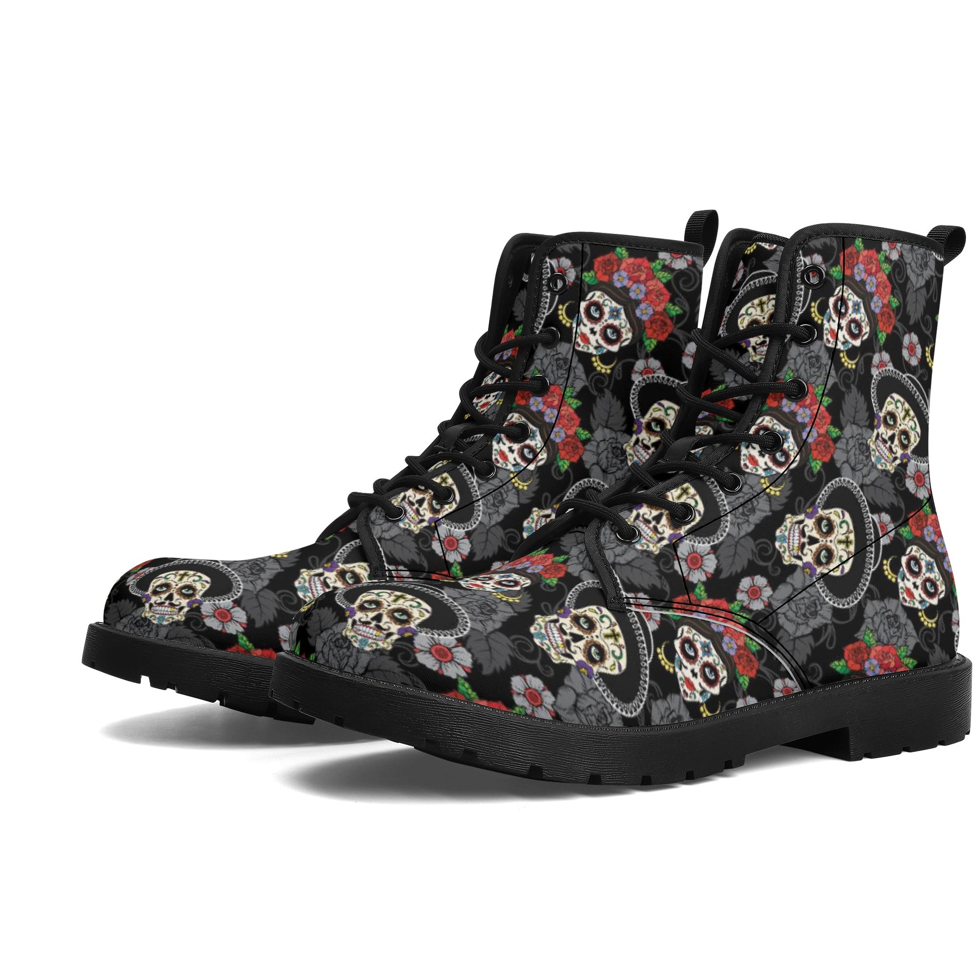 Sugar skull day of the dead boots, sugar skull women's men's boots, halloween women's men's boots, Dia de los muertos women's men's boots, day of the dead women's boots