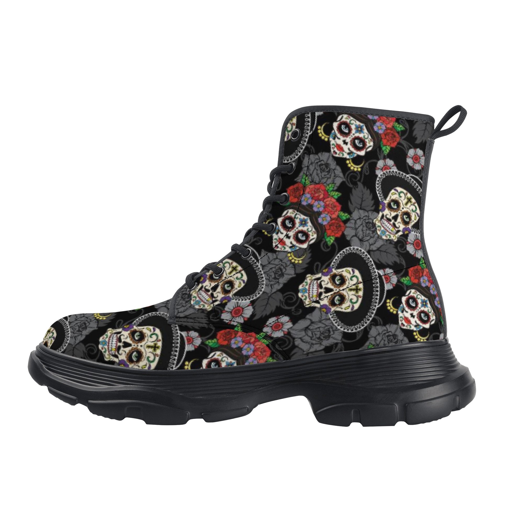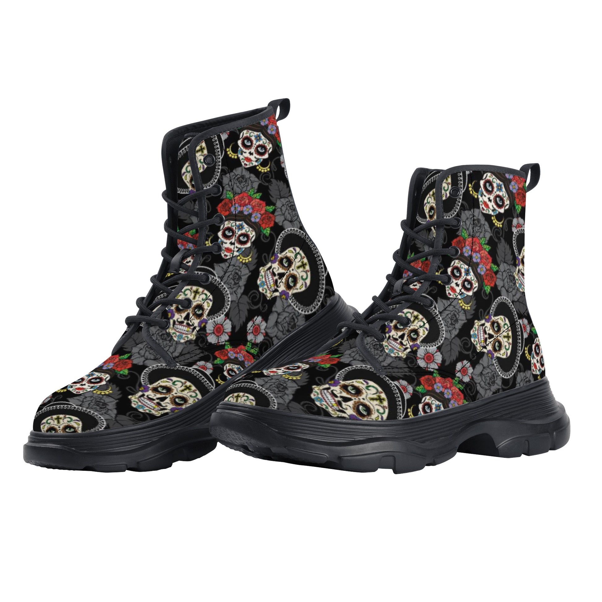 Sugar skull day of the dead boots, sugar skull women's men's boots, halloween women's men's boots, Dia de los muertos women's men's boots, day of the dead women's boots