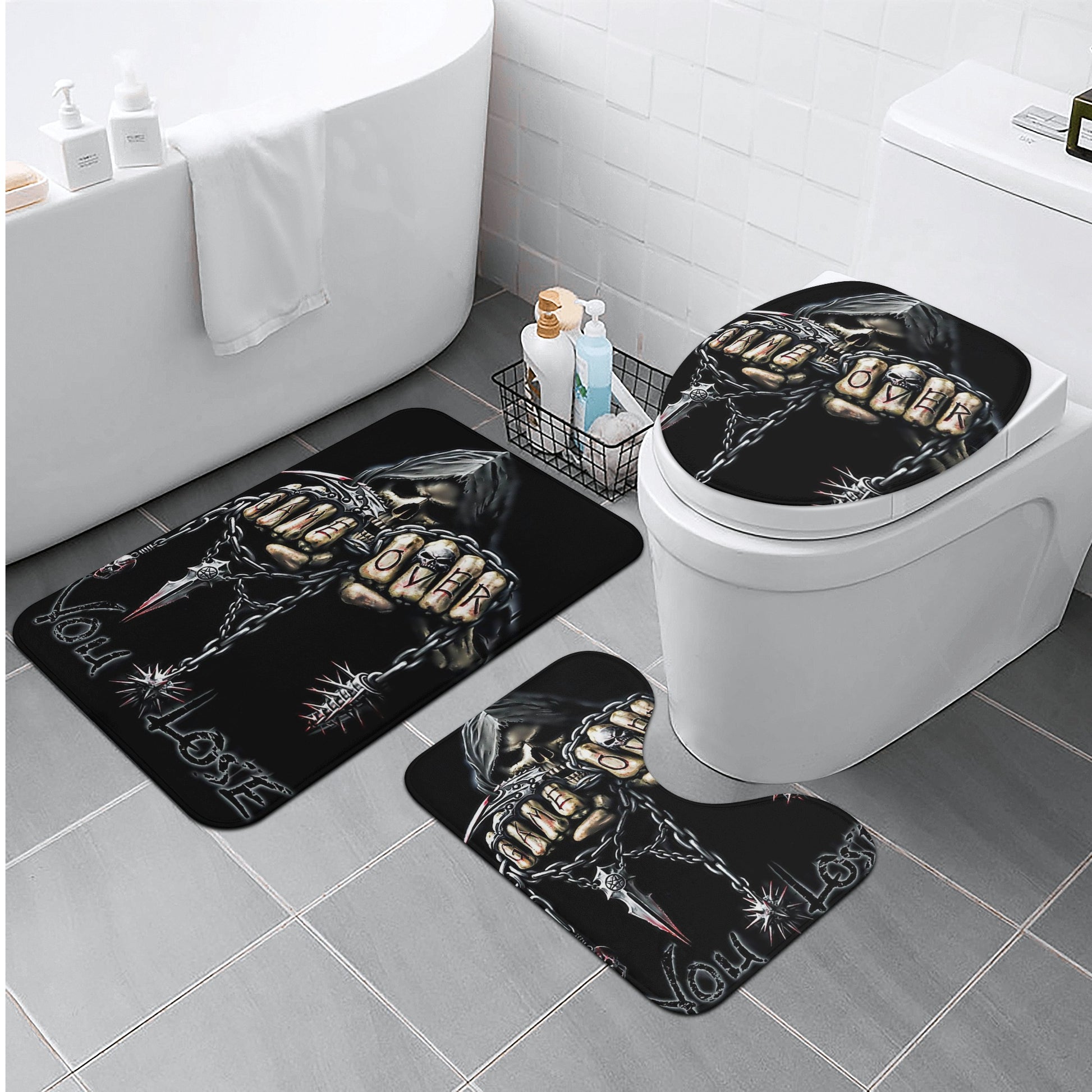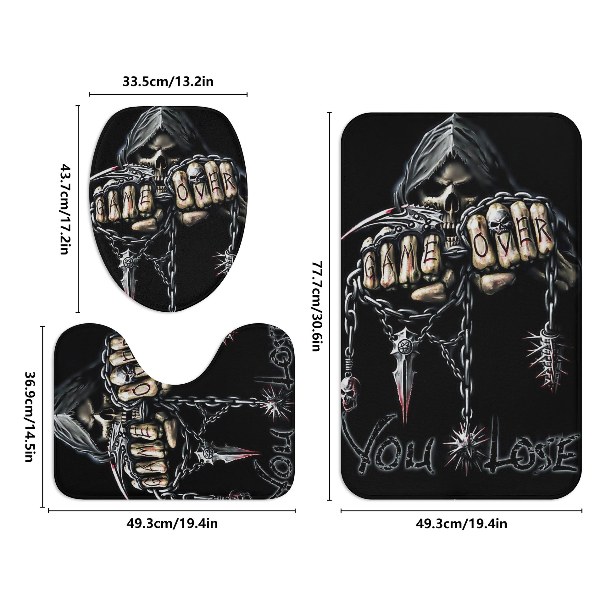 Gothic Halloween bath rug set, Grim reaper bath rug toilet cover set, Skeleton bath rug mat set, Halloween bath rug set, Halloween toilet cover mat, Gothic sugar skull toilet bath rug set